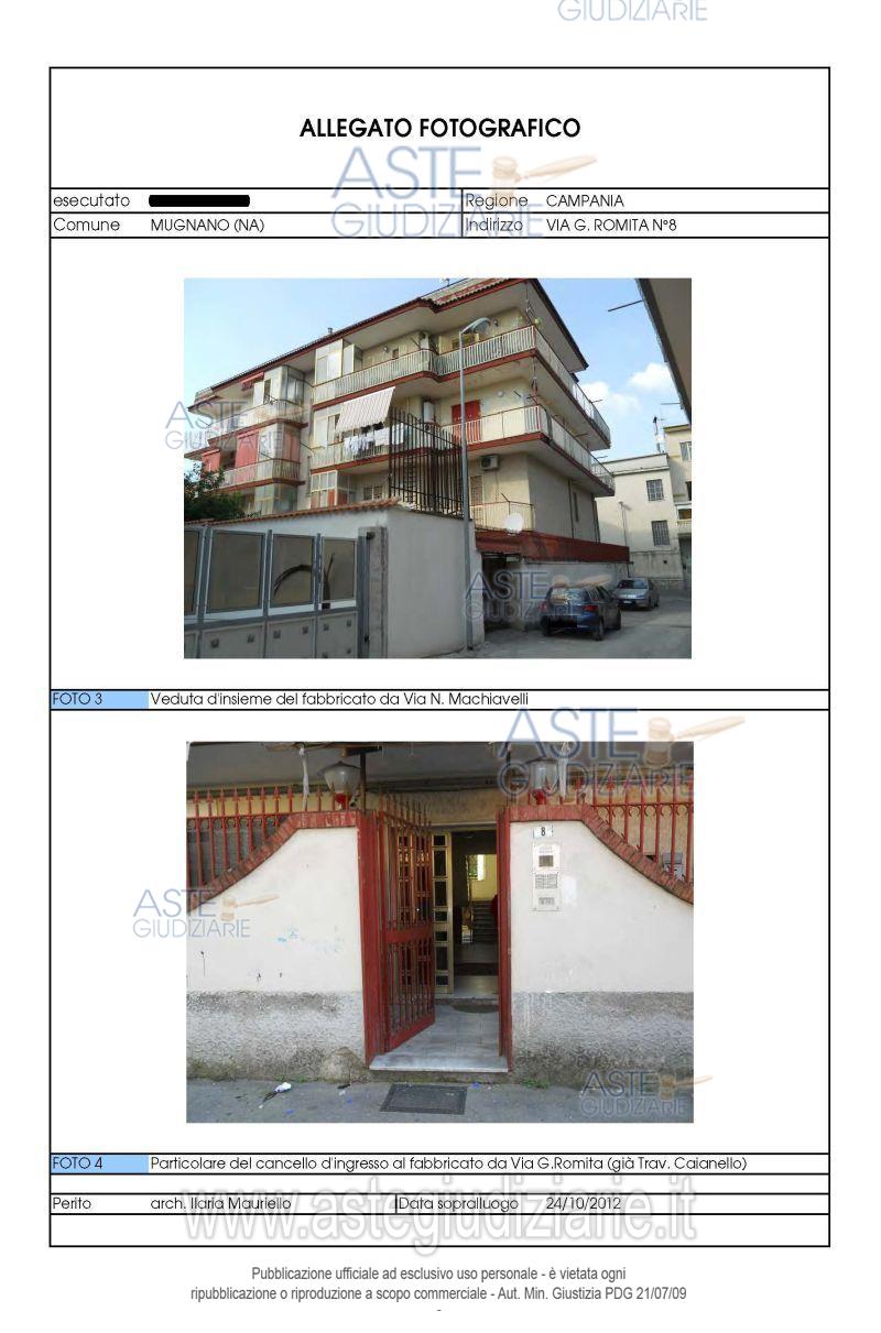 Vendita all'asta Senza incanto - LOTTO 4: Appartamento in Mugnano di Napoli via G. Romita n. 8 piano T°. Composto da soggiorno - cucina, una camera, bagno e balcone . Superficie netta 61 mq. Occupato dagli esecutati . Prezzo base € 24.444,00 (offerta minima € 18.333,00). Data vendita 06/05/2026 ore 15:30. Professionista delegato alla vendita Avv. Michele Lopiano - Email "studiolegaleg.ferri@gmail.com"; Tel. 08118779570. Custode Giudiziario Avv. Michele Lopiano - Email "studiolegaleg.ferri@gmail.com"; Tel. 08118779570. Rif. Tribunale di Napoli - Esecuzione immobiliare post legge 80 n. 911/2011