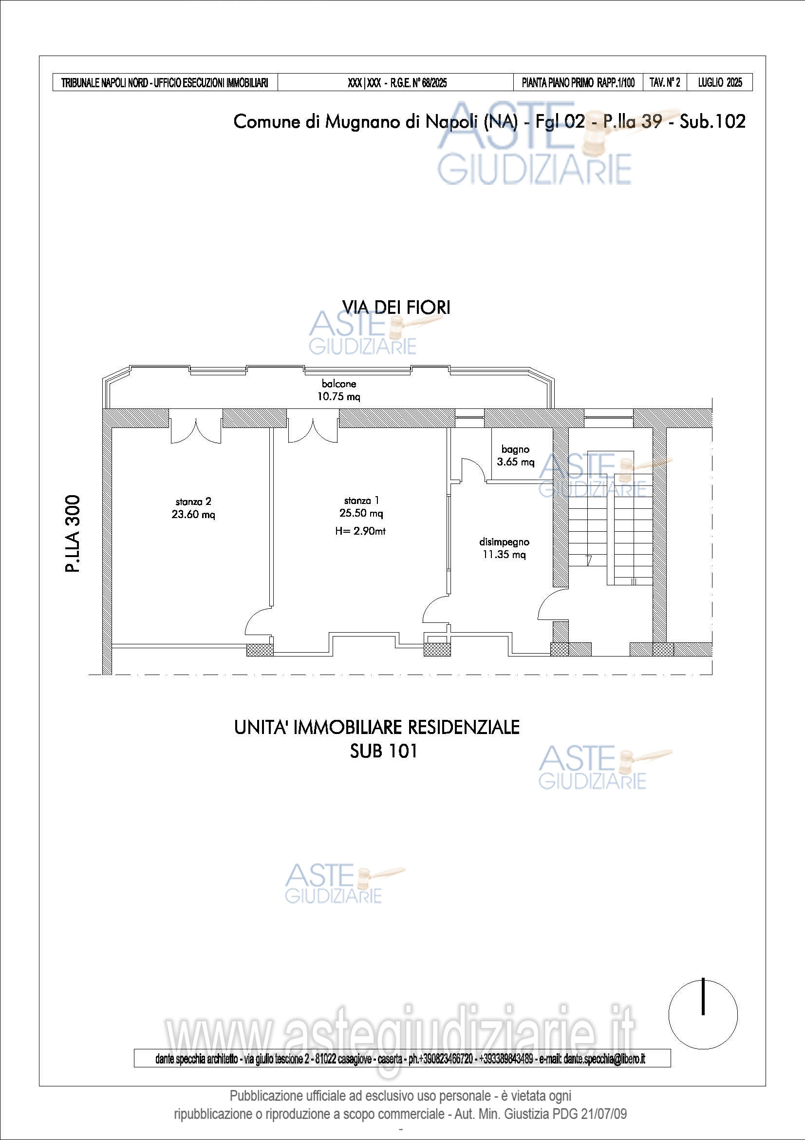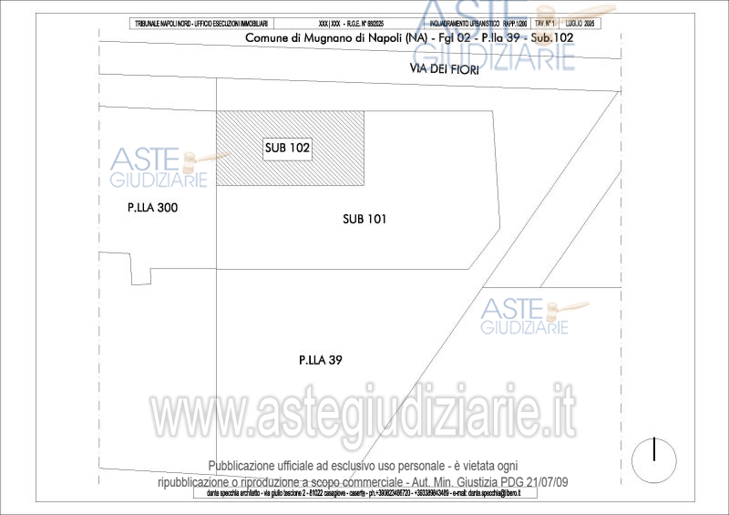 Vendita all'asta Senza incanto, con gara telematica asincrona - LOTTO UNICO: Piena ed intera proprietà dell’unità immobiliare in Mugnano di Napoli alla via dei Fiori 47, identificato in catasto al foglio 2 p.lla 39 sub 102, piano 1, int. 3. Confina a Nord con Via dei Fiori, ad est con il vano scala in comune, a Sud con l’unità immobiliare residenziale Sub 101, ad ovest con il fabbricato P.lla 300. Prezzo base € 75.000,00 (offerta minima € 56.250,00). Data inizio operazioni di vendita: 28/04/2026 ore 16:00. Professionista delegato alla vendita Avv. Giuseppe Lauri - Email "avv.lauri@tiscali.it"; Tel. 3939789392. Custode Giudiziario Avv. Giuseppe Lauri - Email "avv.lauri@tiscali.it"; Tel. 3939789392. Rif. Tribunale di Napoli Nord - Espropriazione immobiliare (cartabia) n. 68/2025