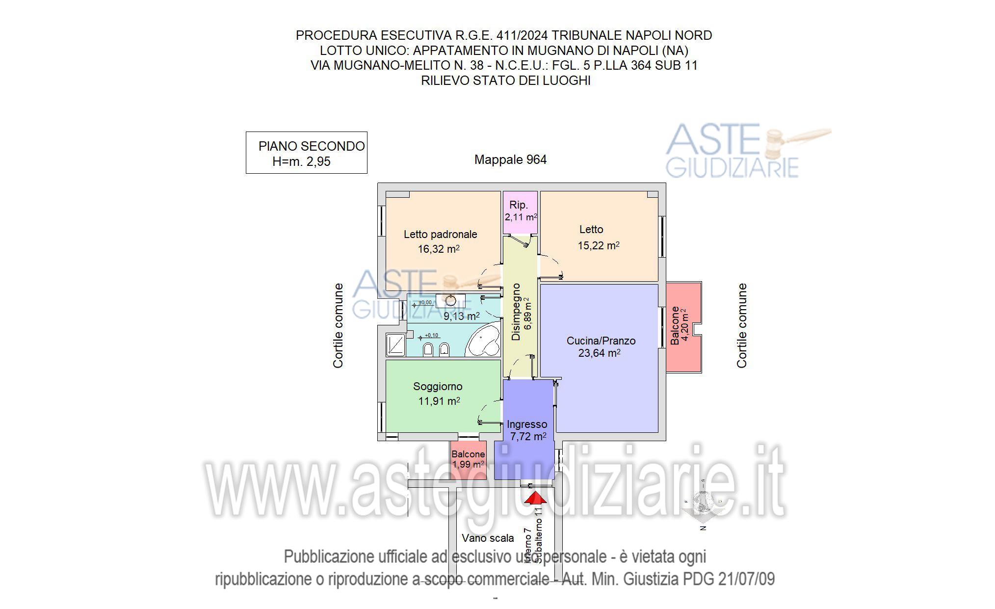 Vendita all'asta Senza incanto, con gara telematica asincrona - LOTTO UNICO: Piena ed intera proprietà di appartamento facente parte del fabbricato denominato “Condominio Volto Santo” ubicato in Mugnano di Napoli (NA) alla Via Mugnano Melito n.38.L’appartamento, contraddistinto dall’interno n.7, è posto al piano secondo, scala unica, ed è composto da ingresso, soggiorno, cucina/pranzo, disimpegno, bagno, ripostiglio, due camere da letto e due balconi. Prezzo base € 110.250,00 (offerta minima € 82.687,50). Data inizio operazioni di vendita: 17/06/2026 ore 11:30. Giudice Dott. Annamaria Buffardo. Professionista delegato alla vendita Dott. Claudio Cesaro - Email "claudiocesaro@cesarorossellicommercialisti.it"; Cell. 3356874141; Tel. 0818112988. Custode Giudiziario Dott. Claudio Cesaro - Email "claudiocesaro@cesarorossellicommercialisti.it"; Cell. 3356874141; Tel. 0818112988. Rif. Tribunale di Napoli Nord - Espropriazione immobiliare (cartabia) n. 411/2024