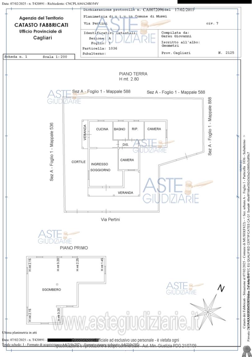 Vendita all'asta Senza incanto, con gara telematica asincrona - LOTTO UNICO: quota pari a 1/1 del diritto di proprietà sull’immobile ad uso civile abitazione, sito in Comune di Musei, in via Sandro Pertini n. 7, identificato al Catasto Fabbricati al foglio 1 Particella 1036, categoria A2, classe 6, consistenza 6 vani, superfice catastale mq 162 (escluse aree scoperte), rendita Euro 356,36; ricadente nella zona C1.3 del Piano Urbanistico Comunale. Prezzo base € 85.320,00 (offerta minima € 63.990,00). Data inizio operazioni di vendita: 17/02/2026 ore 10:30. Professionista delegato alla vendita Dott. Sara Grilletti - Email "saragrilletti@gmail.com"; Tel. 070656272. Custode Giudiziario Lino Icilio Felice Fresi - Email "ivg.visiteimmobili@tiscali.it"; Tel. 0702299036. Rif. Tribunale di Cagliari - Espropriazione immobiliare (cartabia) n. 111/2024