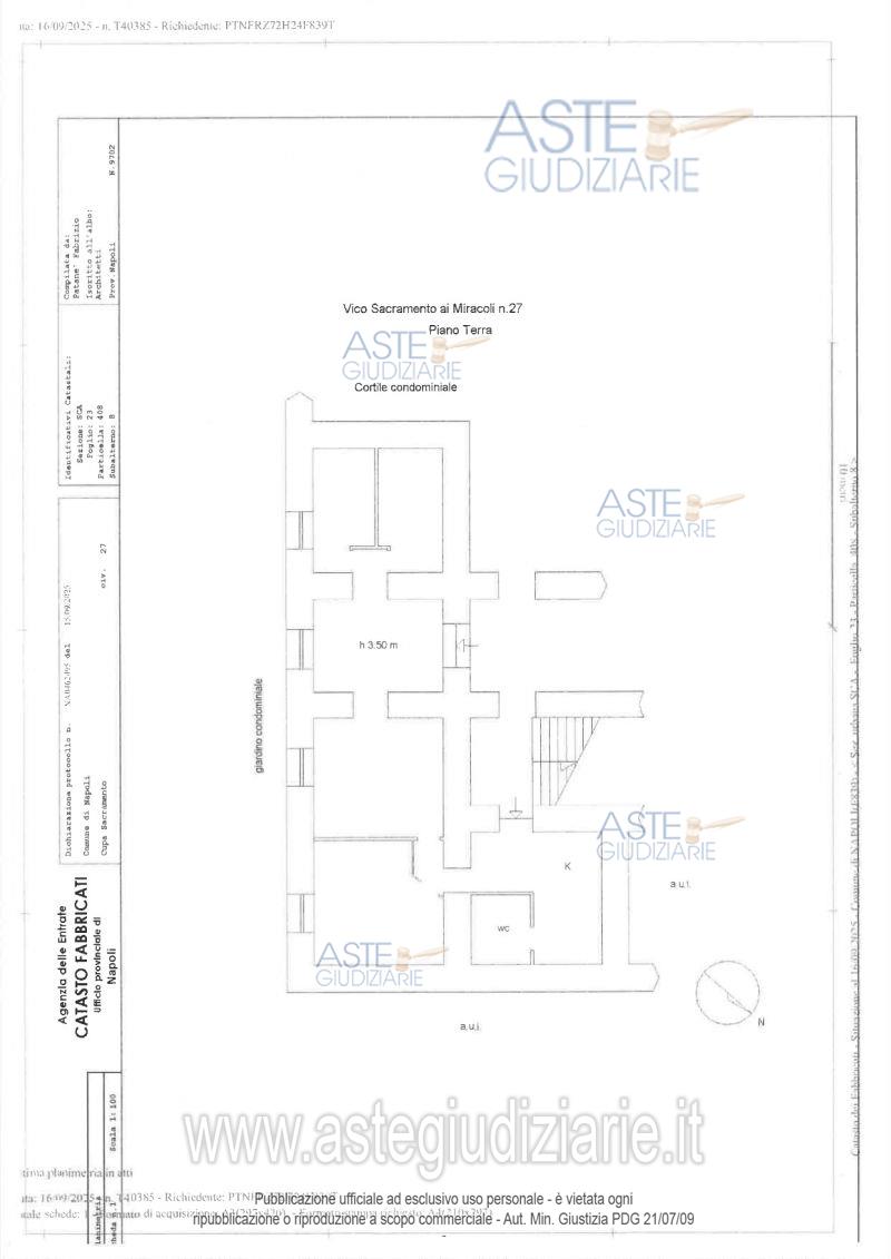 Vendita all'asta Senza incanto - LOTTO UNICO: LOTTO UNICO: Piena proprietà di appartamento sito in Napoli al Vico Sacramento a Foria n. 27, posto al piano terra, composto da 4 vani attualmente suddivisi in: ingresso, soggiorno, camera da letto matrimoniale, altra camera da letto divisa da tramezzo, cucina e Wc. Riportato nel N.C.E.U. del Comune di Napoli con i seguenti identificativi catastali: Sez. SCA, foglio 23, p.lla 408, sub 8, z.c. 3, cat. A/4, classe 3, cons. vani 5, sup. catastale totale mq 147, escluse aree scoperte mq 147, R.C. € 309,87; c. Prezzo base € 149.000,00 (offerta minima € 111.750,00). Data vendita 05/05/2026 ore 16:00. Giudice Fabio Lombardo. Professionista delegato alla vendita Avv. Marcello De Giorgio - Email "avvmarcellodegiorgio@libero.it"; Cell. 3358360365; Tel. 0815801274. Rif. Tribunale di Napoli - Contenzioso civile n. 8060/2019