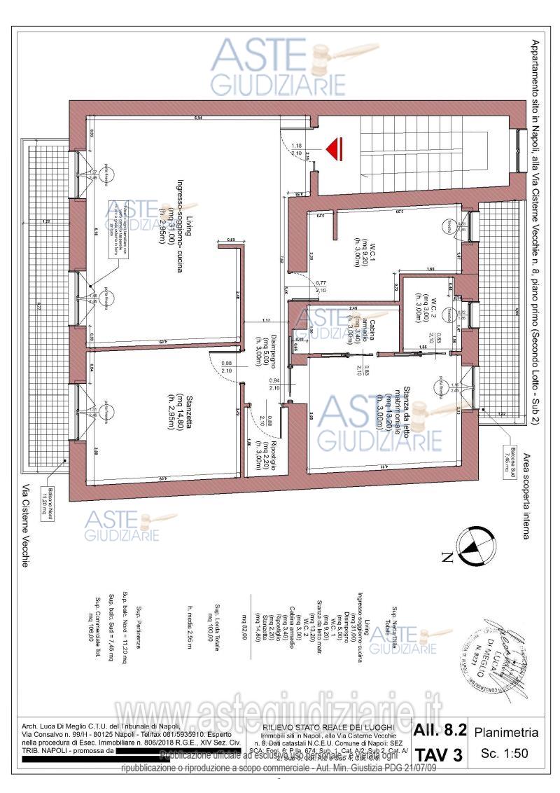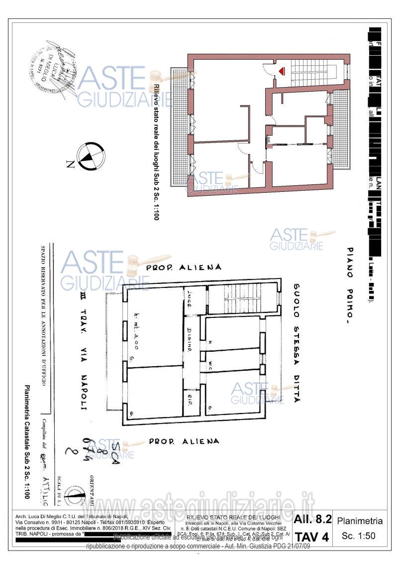 Vendita all'asta Senza incanto, con gara telematica asincrona - LOTTO 2: Piena ed intera proprietà di appartamento di mq 100, al piano primo, composto da living ingresso-soggiorno-cucina, due balconi, disimpegno, due servizi igienici, due camere, una cabina armadio, ripostiglio. Prezzo base € 87.750,00 (offerta minima € 65.813,00). Data inizio operazioni di vendita: 13/01/2026 ore 15:00. Giudice Dott. Maria Ludovica Russo. Professionista delegato alla vendita Avv. Valeria Collicelli - Email "valcollicelli@yahoo.it". Custode Giudiziario Avv. Valeria Collicelli - Email "valcollicelli@yahoo.it". Rif. Tribunale di Napoli - Esecuzione immobiliare post legge 80 n. 806/2018