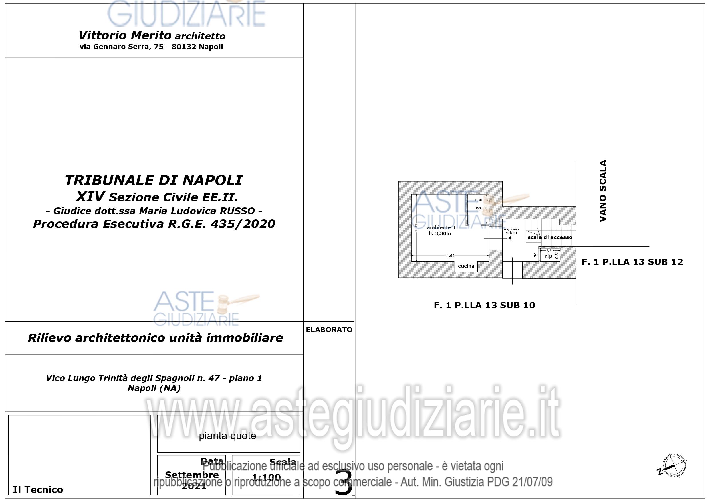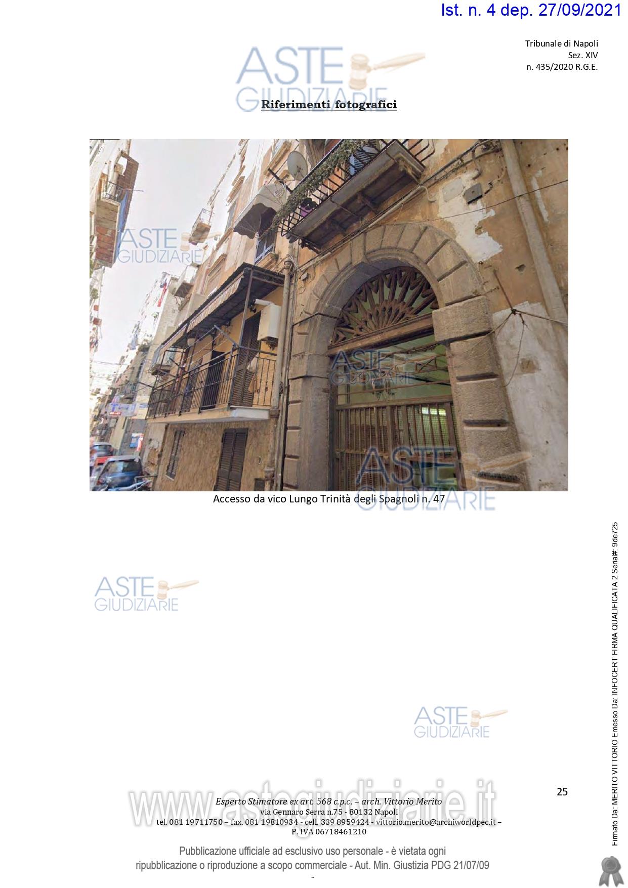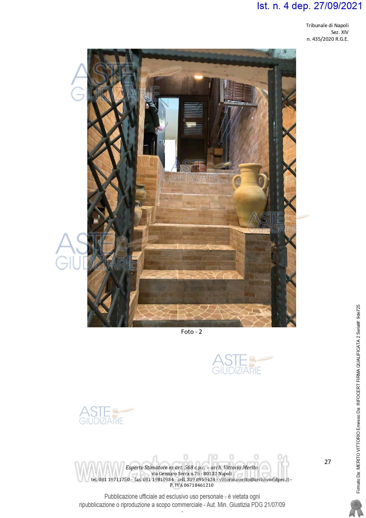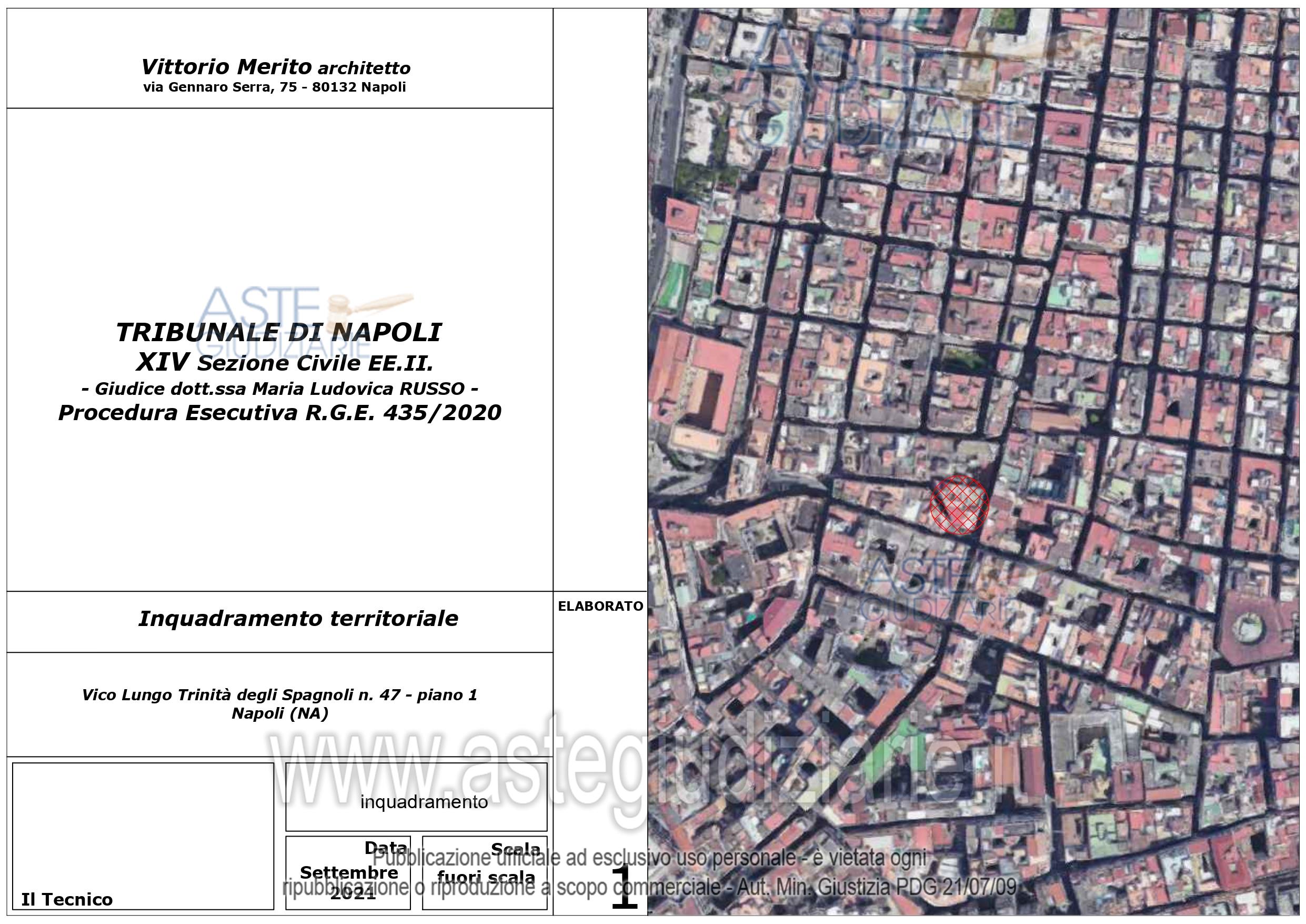 Vendita all'asta Senza incanto, con gara telematica asincrona - LOTTO 2: LOTTO DUE: Piena ed intera proprietà di appartamento in Napoli al Vico Lungo Trinità degli Spagnoli n. 47 - piano 1, della consistenza catastale di 1,5 vani che si sviluppa nel seguente modo: n. 1 ambiente, n. 1 wc, ripostiglio esterno su pianerottolo delle scale di accesso comune. Prezzo base € 43.700,00 (offerta minima € 32.775,00). Data inizio operazioni di vendita: 10/12/2025 ore 15:00. Giudice Dott. Maria Ludovica Russo. Professionista delegato alla vendita Avv. Marcello De Giorgio - Email "avvmarcellodegiorgio@libero.it"; Cell. 3358360365; Tel. 0815801274. Custode Giudiziario Avv. Marcello De Giorgio - Email "avvmarcellodegiorgio@libero.it"; Cell. 3358360365; Tel. 0815801274. Rif. Tribunale di Napoli - Esecuzione immobiliare post legge 80 n. 435/2020
