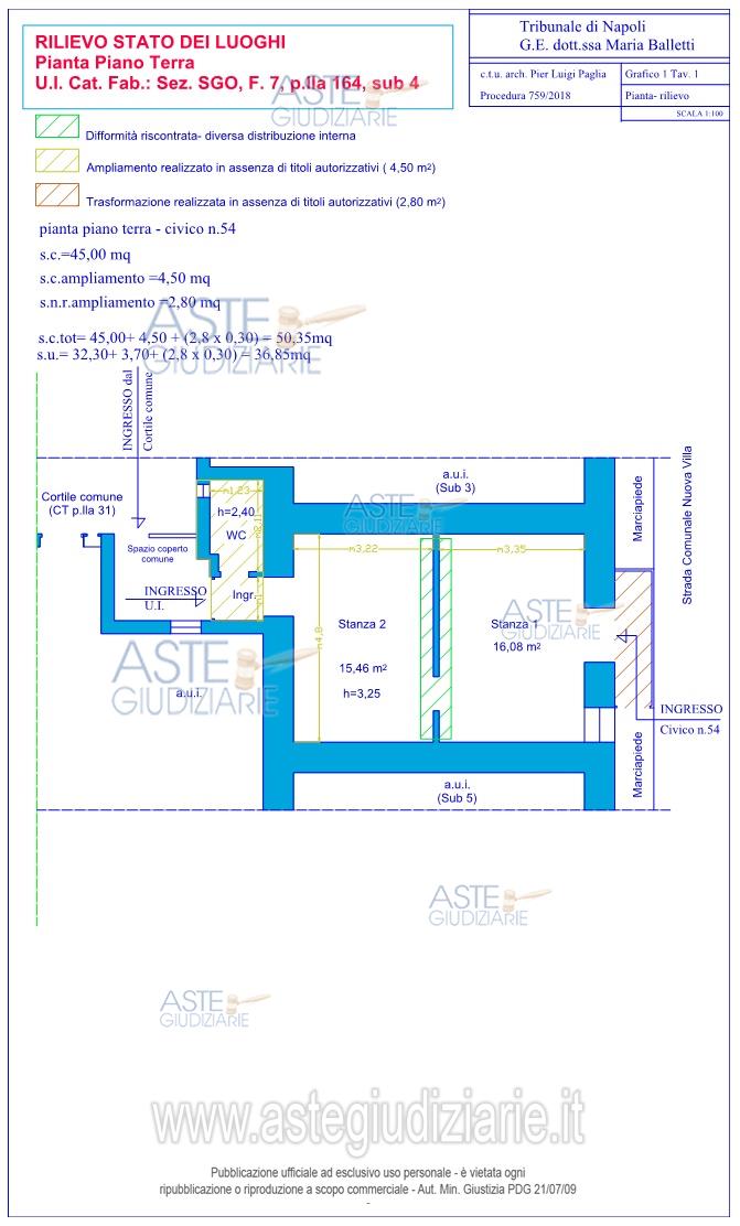 Vendita all'asta Senza incanto, con gara telematica asincrona - LOTTO UNICO: Lotto unico costituito dalla quota pari a 1/1 di un’unità abitativa di tipo civile A/5 sita in Napoli, via strada Comunale Nuova Villa n. 54 – Piano T, con accesso diretto dalla strada, composta da due camere e bagno. Prezzo base € 43.250,00 (offerta minima € 32.437,50). Data inizio operazioni di vendita: 05/05/2026 ore 15:30. Giudice Dott. Francesco Abete. Professionista delegato alla vendita Avv. Raffaele Sepe - Email "raffaelesepe@studiolegalesepe.com"; Tel. 0817944025. Custode Giudiziario Avv. Raffaele Sepe - Email "raffaelesepe@studiolegalesepe.com"; Tel. 0817944025. Rif. Tribunale di Napoli - Esecuzione immobiliare post legge 80 n. 759/2018