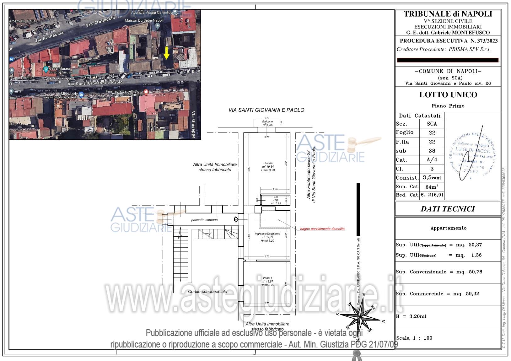 Vendita in attesa dell'emissione del nuovo bando d'asta. LOTTO UNICO: Piena ed intera proprietà dell’unità immobiliare posta al piano 1° di un fabbricato plurifamiliare sito in Napoli alla Via Santi Giovanni e Paolo n. 26, accessibile dalla prima porta a destra per chi raggiunge il passetto del primo piano della scala condominiale avente il primo rampante alla destra del cortile per chi viene dall’androne. Ultimo prezzo base € 96.000,00 (offerta minima € 72.000,00). Professionista delegato alla vendita Avv. Benvenuto Di Flumeri - Email "avvocatidiflumeri@gmail.com"; Tel. 0819762679. Custode Giudiziario Avv. Benvenuto Di Flumeri - Email "avvocatidiflumeri@gmail.com"; Tel. 0819762679. Rif. Tribunale di Napoli - Espropriazione immobiliare (cartabia) n. 373/2023