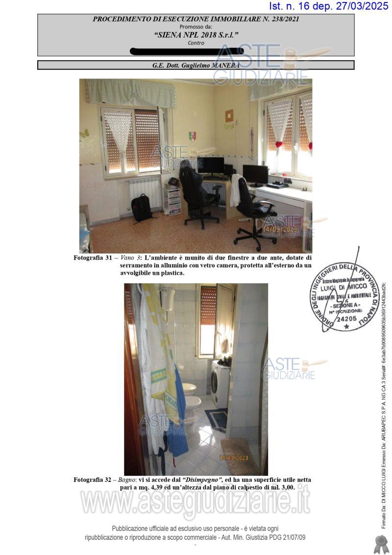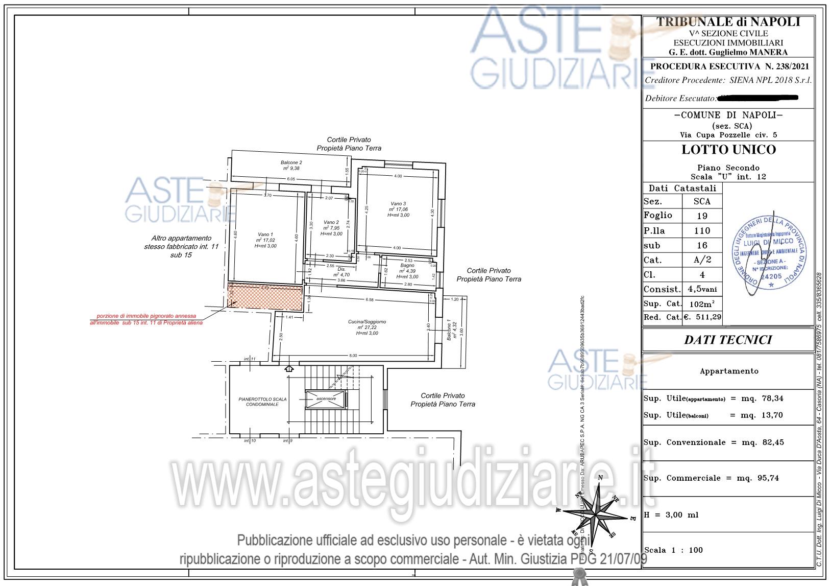 Vendita all'asta Senza incanto, con gara telematica asincrona - LOTTO UNICO: Appartamento al piano secondo, interno 12, composto da cucina/soggiorno, disimpegno, tre camere, un bagno, una balconata ed un balcone, della superficie commerciale di circa mq 96. Prezzo base € 126.600,00 (offerta minima € 94.950,00). Data inizio operazioni di vendita: 20/01/2026 ore 16:00. Giudice Dott. Guglielmo Manera. Professionista delegato alla vendita Dott. Salvatore Bonagura - Email "studiobonagura@libero.it"; Cell. 3286530845; Tel. 0815518985. Custode Giudiziario Dott. Salvatore Bonagura - Email "studiobonagura@libero.it"; Cell. 3286530845; Tel. 0815518985. Rif. Tribunale di Napoli - Esecuzione immobiliare post legge 80 n. 238/2021