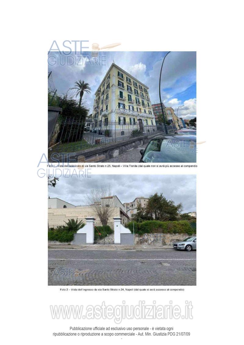 Vendita all'asta Senza incanto, con gara telematica asincrona - LOTTO 4: Piena ed intera proprietà di un compendio sito in Napoli alla Via Santo Strato con accesso da viale privato al civico n. 24 di detta via. Segnatamente, il compendio è composto da (a).una unità su più livelli con annessi i relativi spazi esterni ossia un terrazzo a livello e il lastrico di copertura; (b).un giardino attrezzato di circa 1400 mq; (c).un manufatto terraneo con formazione planimetrica ad L. La superficie convenzionale complessiva è di 500 mq. Prezzo base € 1.125.000,00 (offerta minima € 843.750,00). Data inizio operazioni di vendita: 05/05/2026 ore 16:00. Professionista delegato alla vendita Avv. Giorgia Viola - Email "avv.giorgiaviola@libero.it"; Tel. 08118858628. Custode Giudiziario Avv. Giorgia Viola - Email "avv.giorgiaviola@libero.it"; Tel. 08118858628. Rif. Tribunale di Napoli - Esecuzione immobiliare post legge 80 n. 221/2022