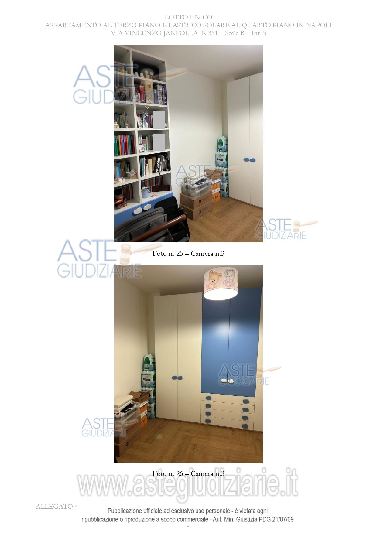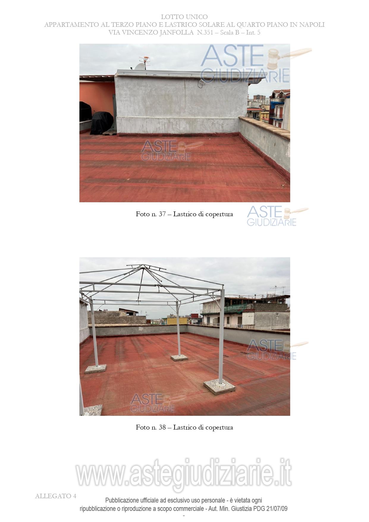 Vendita in attesa dell'emissione del nuovo bando d'asta. LOTTO UNICO: APPARTAMENTO POSTO AL TERZO PIANO DELLA SCALA B, INTERNO 5, COMPOSTO DA INGRESSO, SOGGIORNO/CUCINA, TRE CAMERE, DUE BAGNI E CORRIDOIO, CON PERTINENZIALE LASTRICO DI COPERTURA AL QUARTO PIANO,. Ultimo prezzo base € 150.000,00 (offerta minima € 112.500,00). Giudice Manuela Granata. Professionista delegato alla vendita Avv. Sofia Nazzaro - Email "studincanti@gmail.com"; Cell. 3356900318; Tel. 0815754361. Custode Giudiziario Avv. Sofia Nazzaro - Email "studincanti@gmail.com"; Cell. 3356900318; Tel. 0815754361. Rif. Tribunale di Napoli - Espropriazione immobiliare (cartabia) n. 464/2023