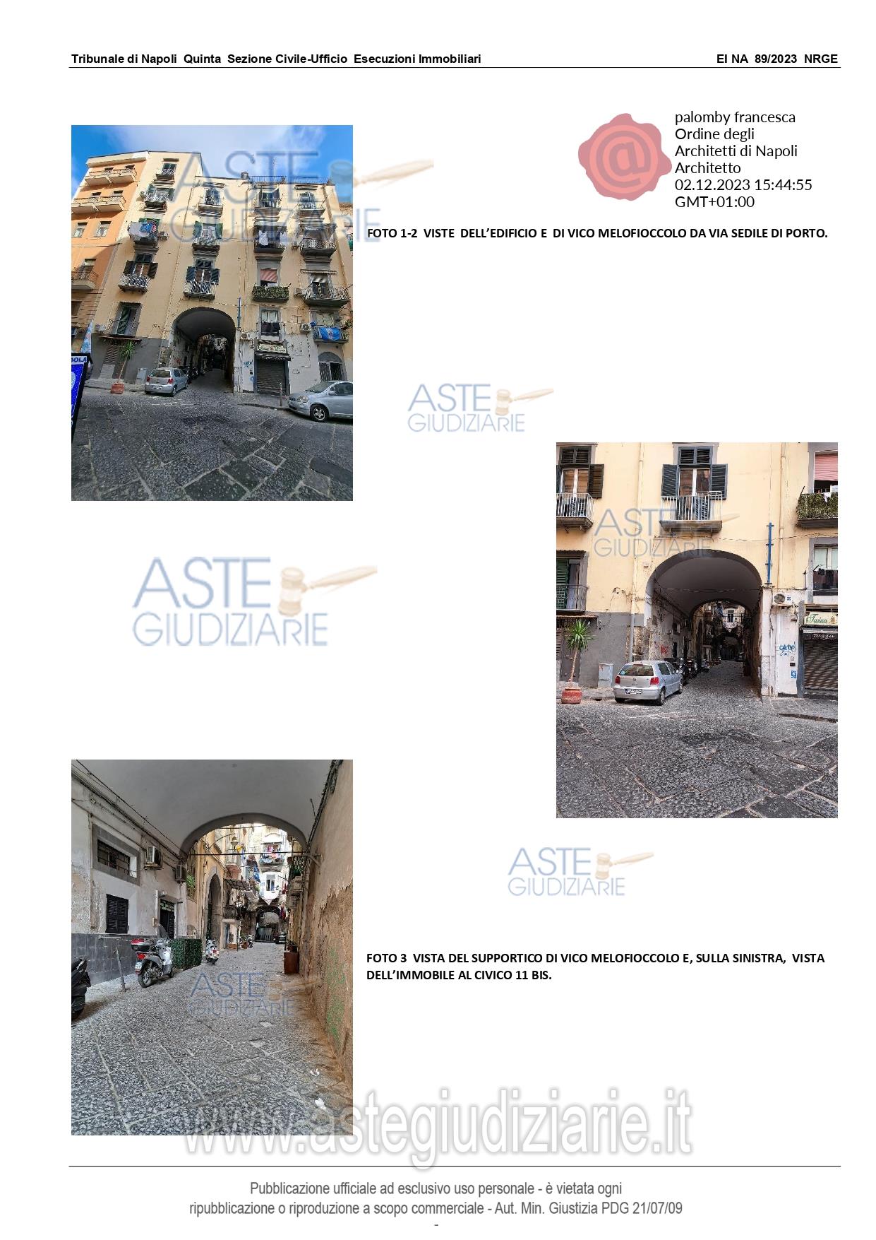 Vendita in attesa dell'emissione del nuovo bando d'asta. LOTTO UNICO: piano terra più ammezzato, con ingresso indipendente dal civico 11 bis attraverso una porta posta sulla sinistra del supportico di vico Melofioccolo. Ultimo prezzo base € 87.000,00 (offerta minima € 65.250,00). Professionista delegato alla vendita Avv. Stefania Scotto Di Ciccariello - Email "stefania.scotto@alice.it"; Cell. 360414742; Tel. 360414742. Custode Giudiziario Avv. Stefania Scotto Di Ciccariello - Email "stefania.scotto@alice.it"; Cell. 360414742; Tel. 360414742. Rif. Tribunale di Napoli - Esecuzione immobiliare post legge 80 n. 89/2023