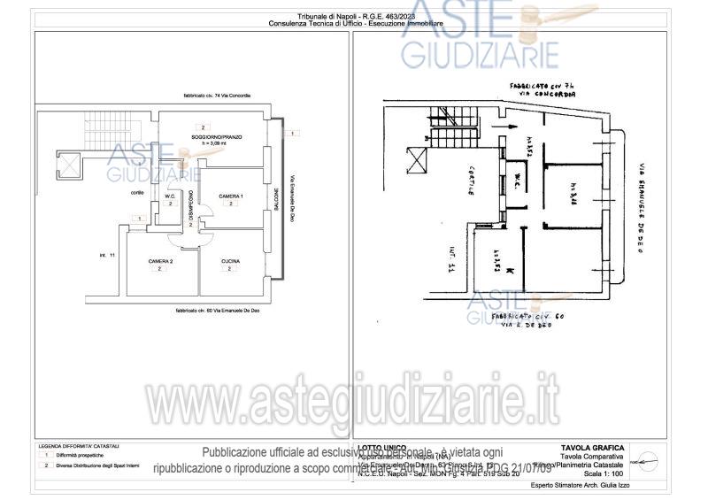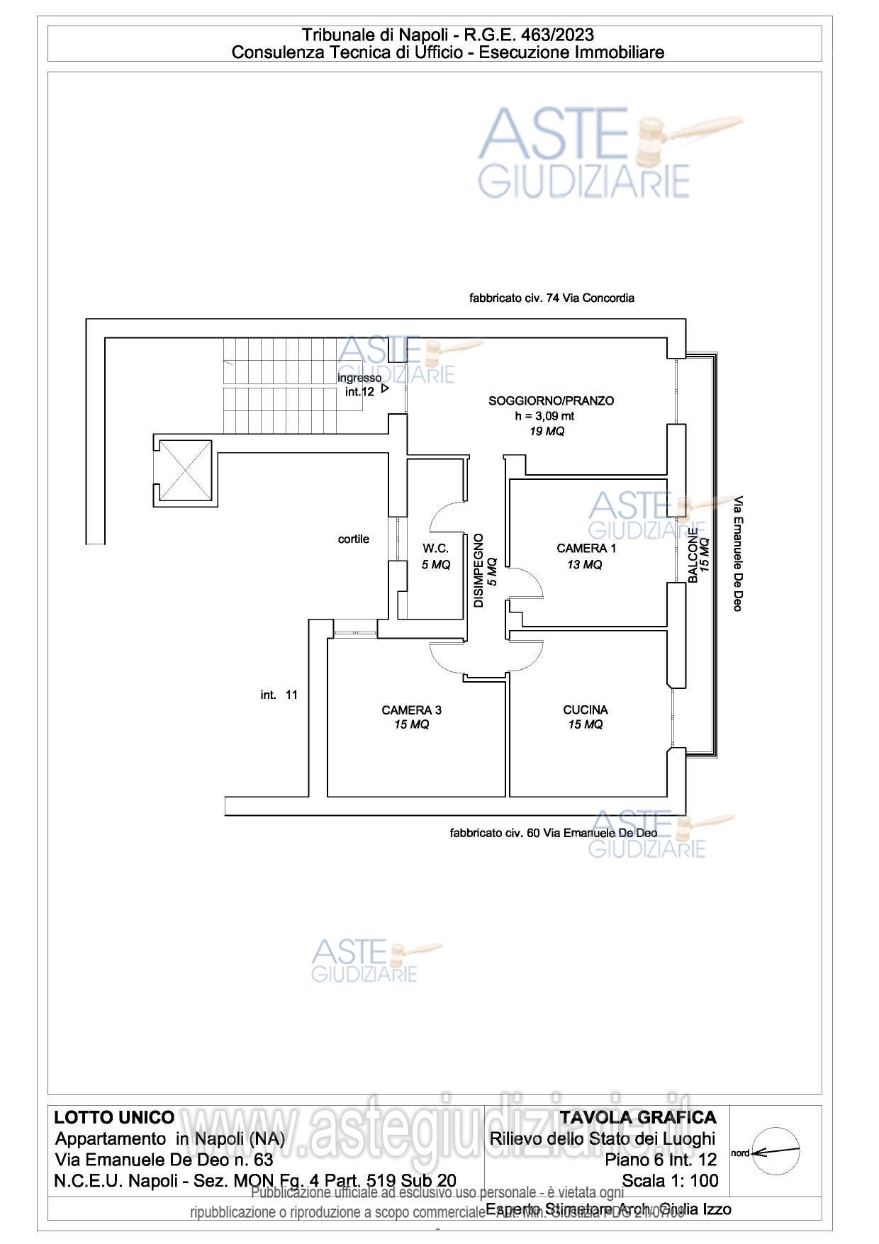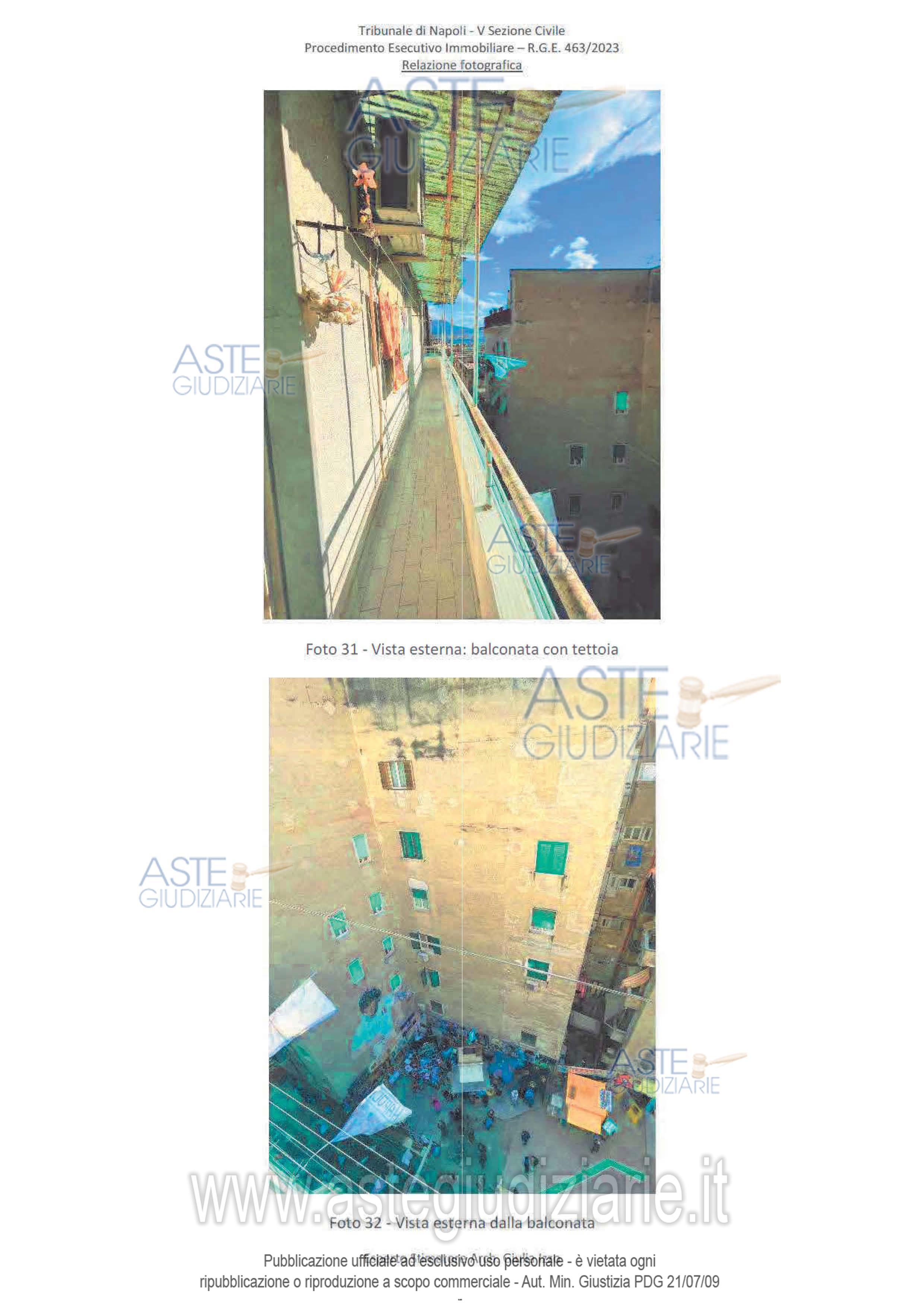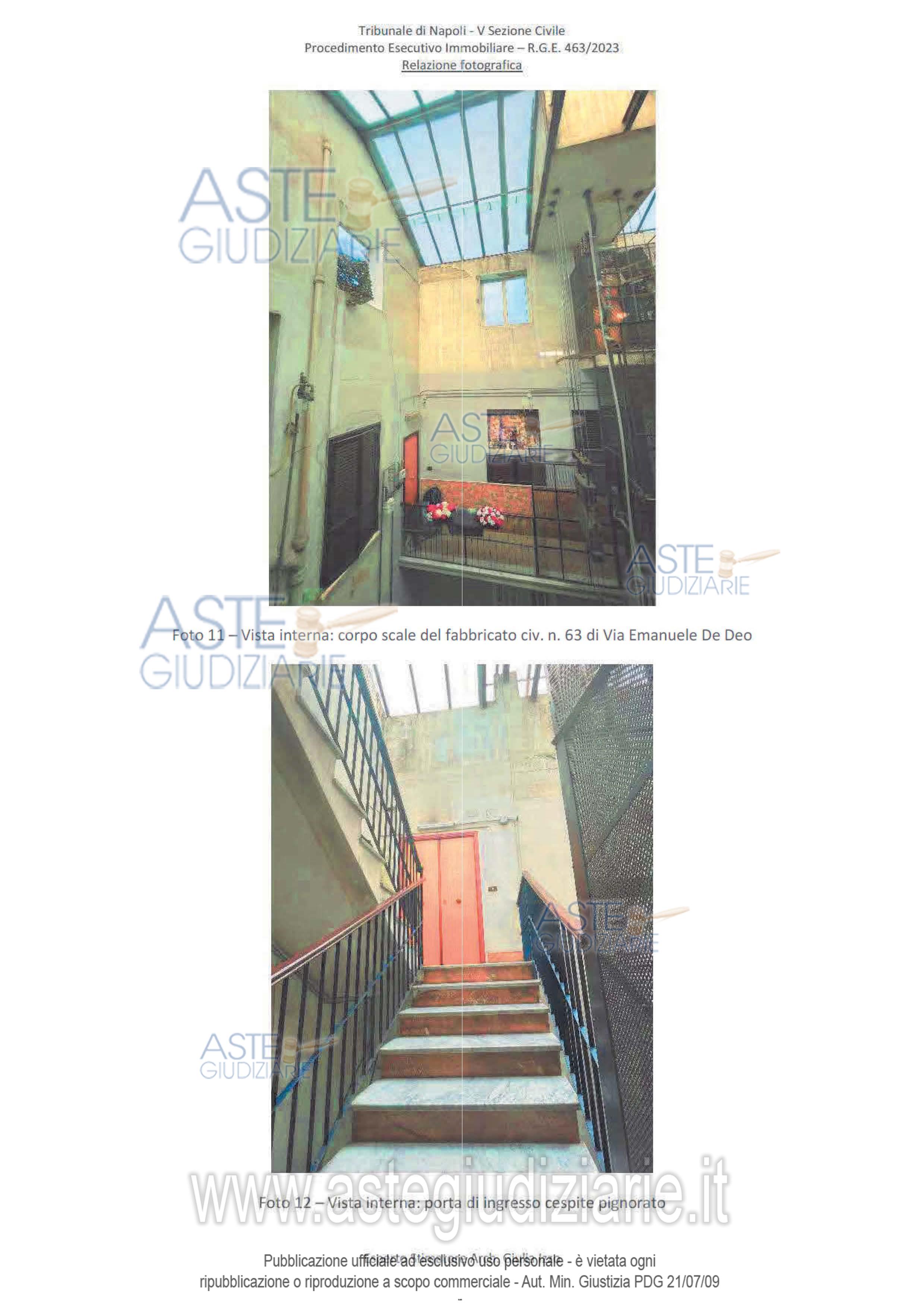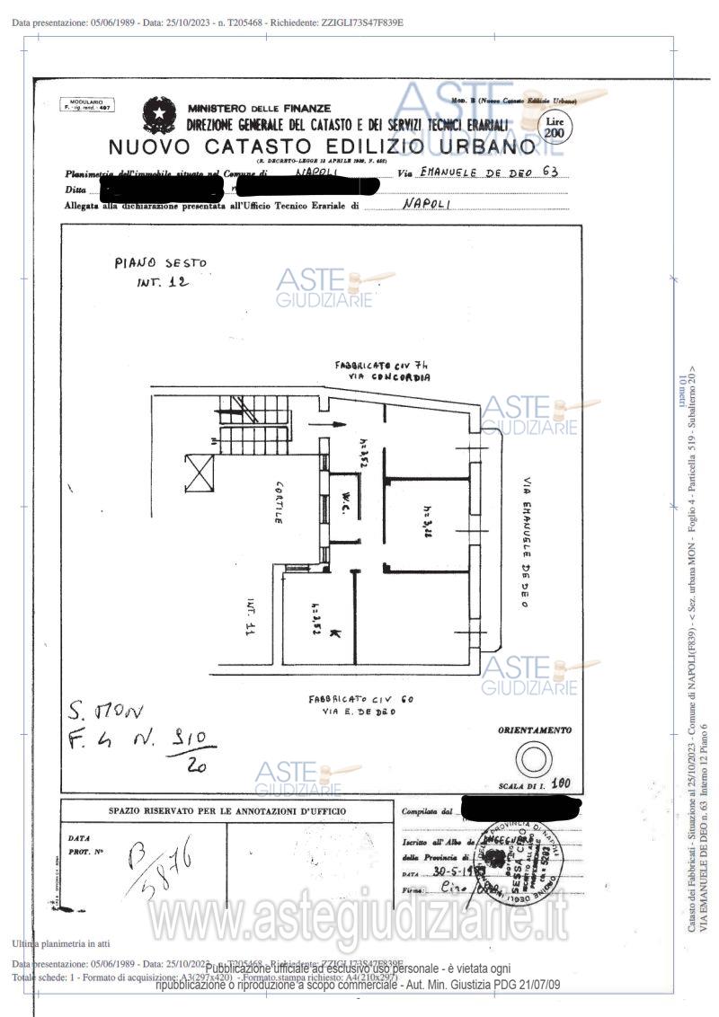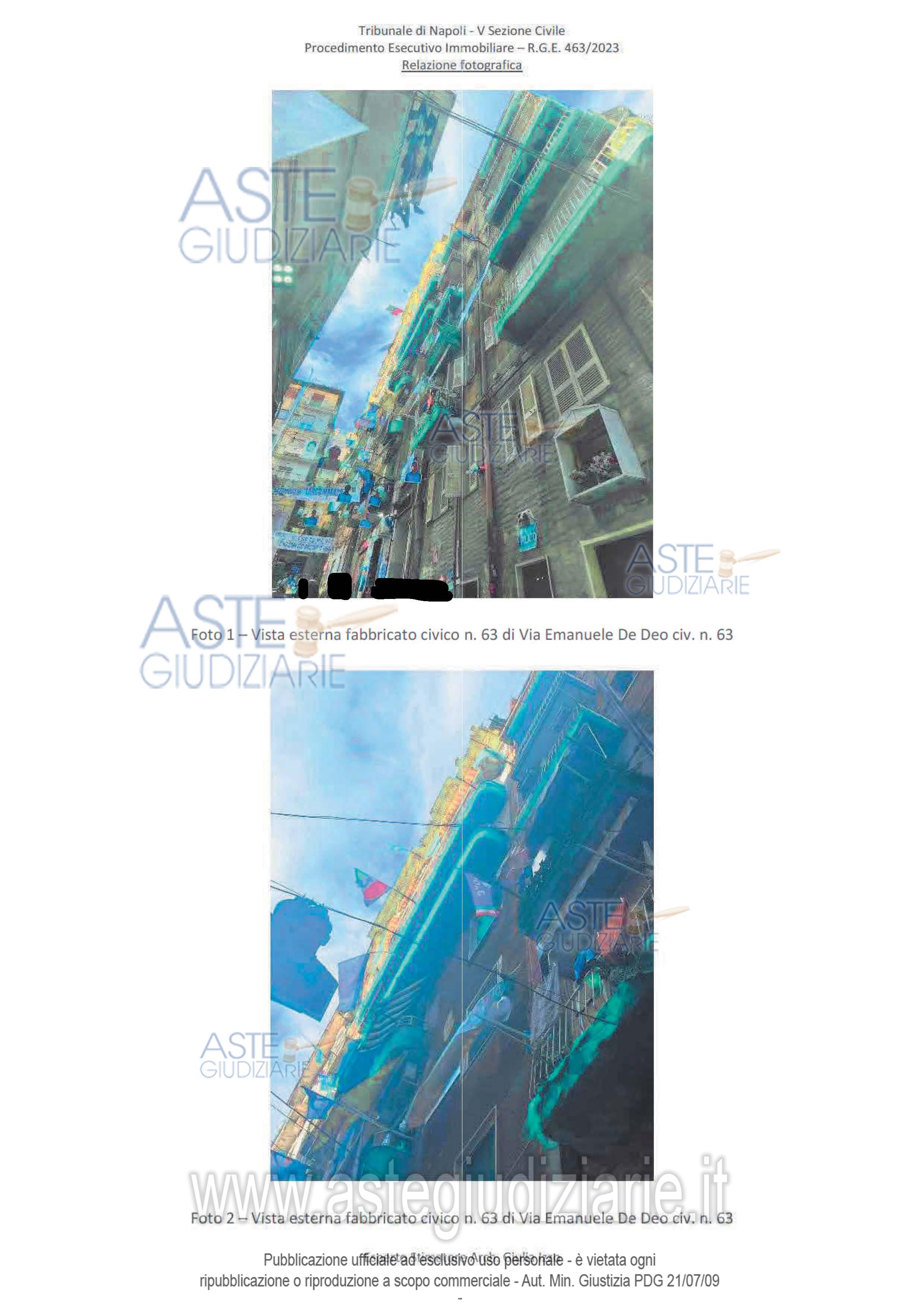 Vendita all'asta Senza incanto, con gara telematica asincrona - LOTTO UNICO: piena proprietà di appartamento sito in Napoli alla Via Emanuele De Deo n. 63, 6° piano, composto da tre vani ed accessori oltre ad una balconata disposta a sud. Prezzo base € 239.000,00 (offerta minima € 179.250,00). Data inizio operazioni di vendita: 17/12/2025 ore 16:30. Professionista delegato alla vendita Avv. Caterina Orditura - Email "korditura@hotmail.com"; Tel. 08119363887. Custode Giudiziario Avv. Caterina Orditura - Email "korditura@hotmail.com"; Tel. 08119363887. Rif. Tribunale di Napoli - Espropriazione immobiliare (cartabia) n. 463/2023