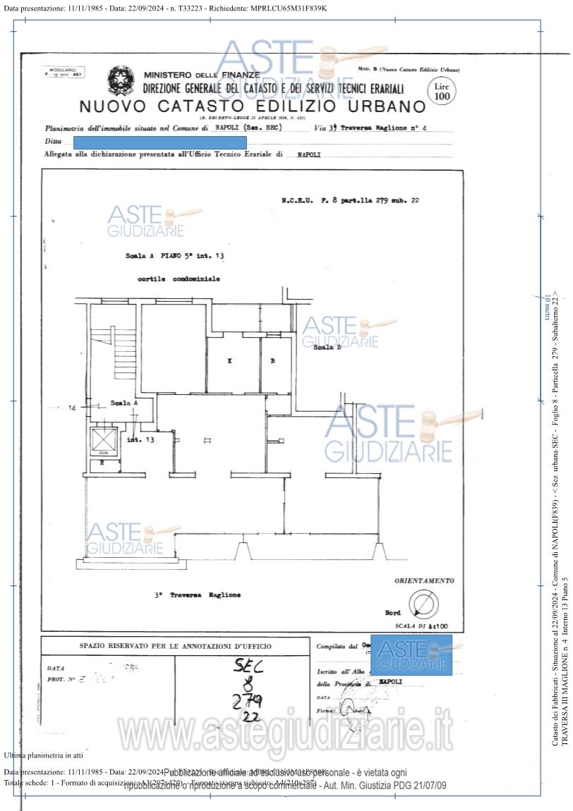 Vendita all'asta Senza incanto, con gara telematica asincrona - LOTTO 1: Piena ed intera proprietà di appartamento sito al piano quinto della scala A, interno 13, composto da ingresso, tre camere, soggiorno, salone, cucina, e bagno, oltre piccoli ambienti ad uso ripostiglio e un balcone/terrazzo fronte strada, per una superfice commerciale di mq. 160. Il bene attualmente risulta in possesso diretto del debitore esecutato. Prezzo base € 217.000,00 (offerta minima € 162.750,00). Data inizio operazioni di vendita: 21/04/2026 ore 16:00. Giudice Peluso Roberto. Professionista delegato alla vendita Avv. Carolina Varricchio - Cell. 3395448354; Tel. 081668243. Custode Giudiziario Avv. Carolina Varricchio - Email "varricchiocarolina@gmail.com". Rif. Tribunale di Napoli - Espropriazione immobiliare (cartabia) n. 424/2024