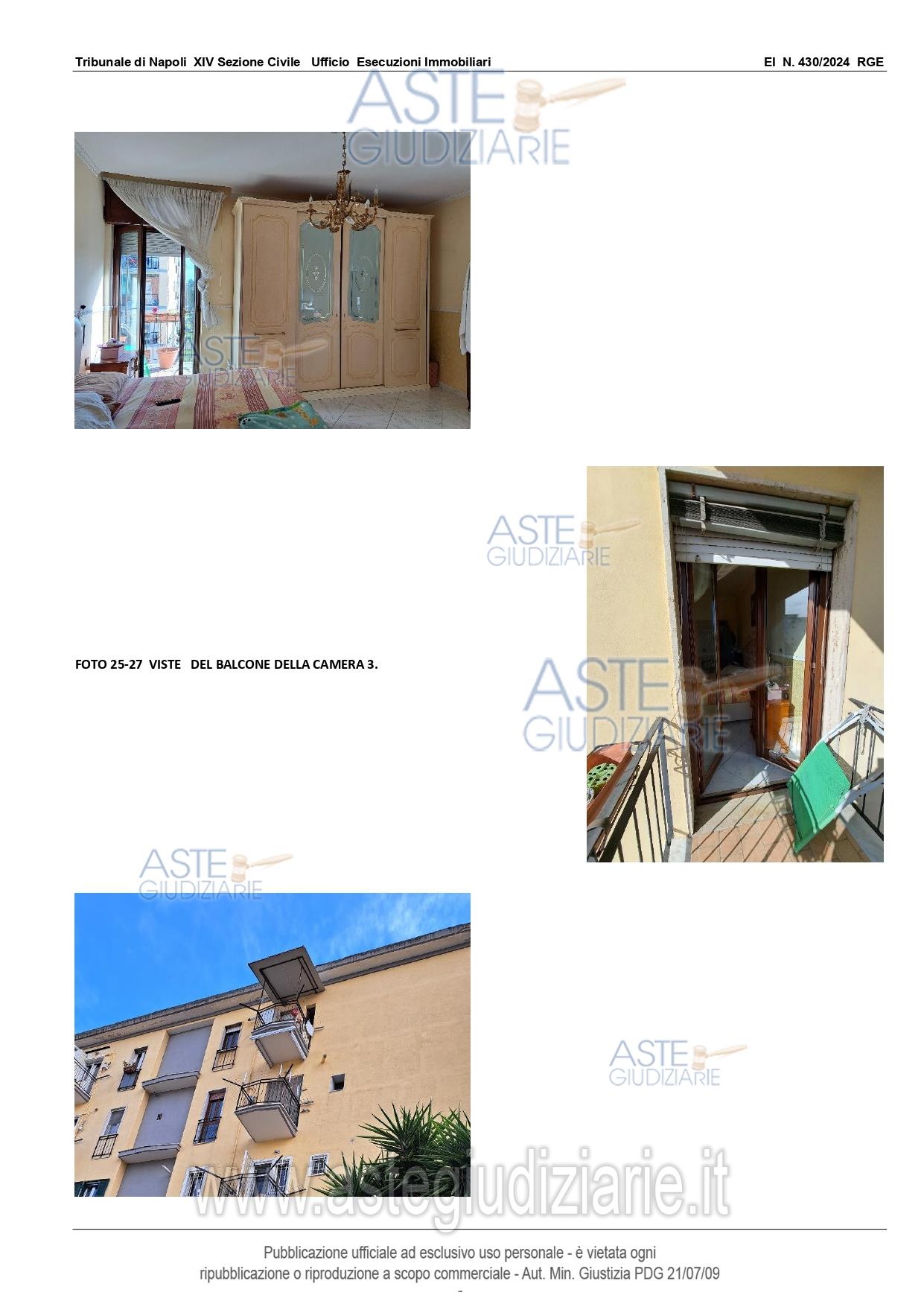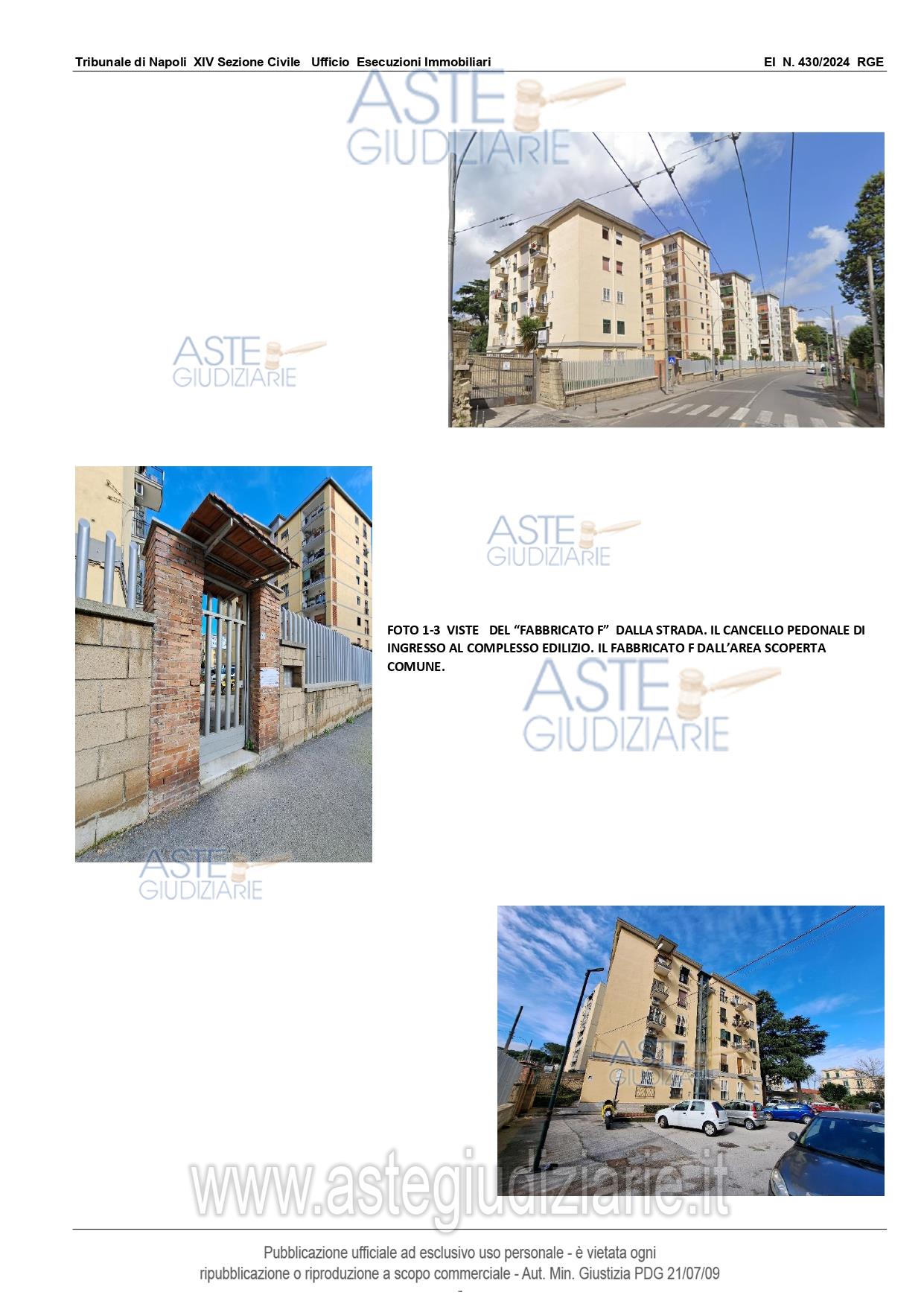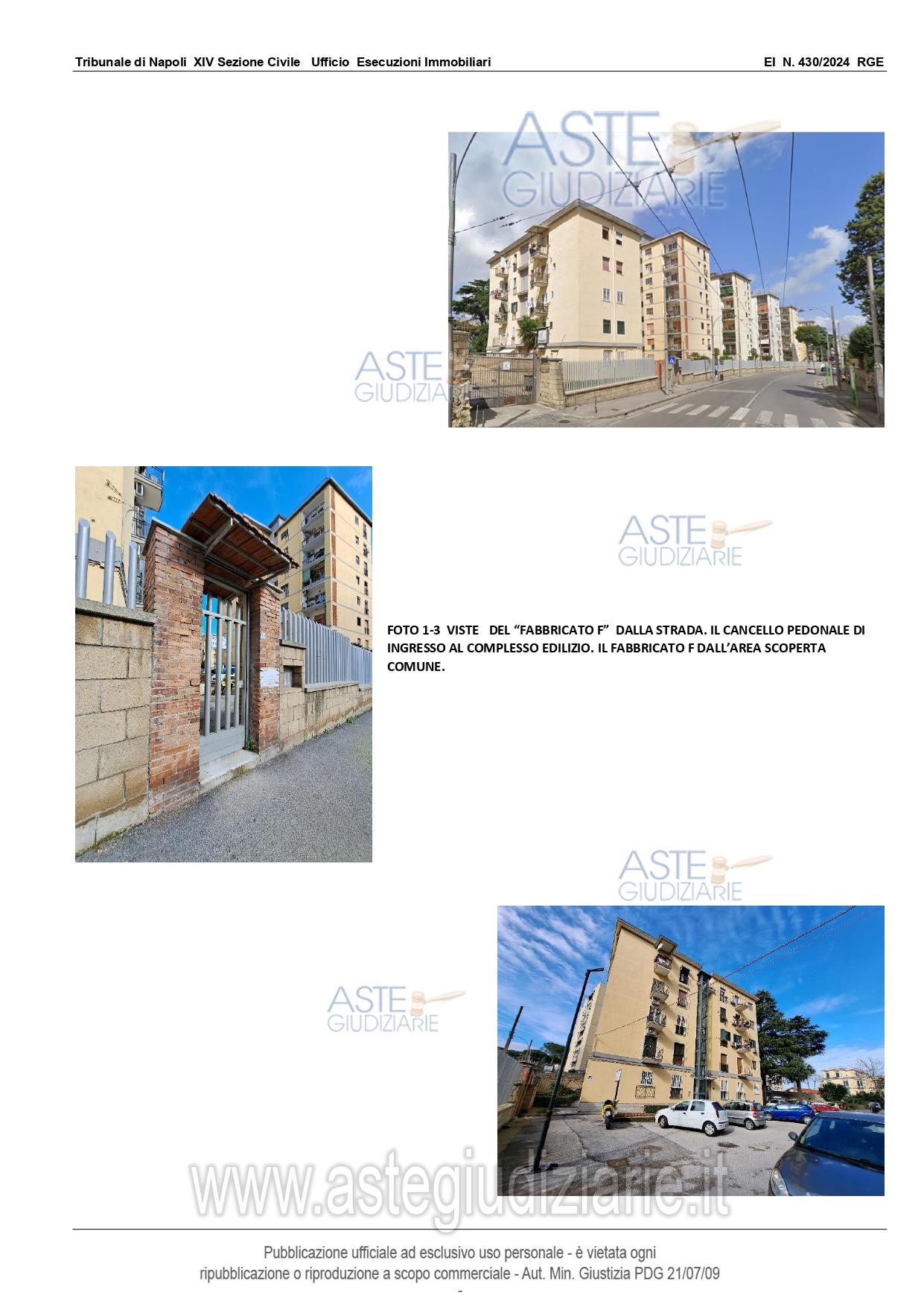 Vendita all'asta Senza incanto, con gara telematica asincrona - LOTTO UNICO: Piena ed intera proprietà di appartamento posto al quarto ed ultimo piano (oltre il rialzato), composto da: cucina-tinello, disimpegno, tre camere, bagno, oltre a due piccoli balconi sagomati. La superficie utile calpestabile è di circa 79 mq, con la superficie dei balconi di circa 3 mq, per una superficie commerciale vendibile di circa 87 mq. Prezzo base € 244.000,00 (offerta minima € 183.000,00). Data inizio operazioni di vendita: 24/02/2026 ore 10:00. Giudice Miriam Valenti. Professionista delegato alla vendita Avv. Paola Ciuoffo - Email "paolaciuoffo@gmail.com". Custode Giudiziario Avv. Paola Ciuoffo - Email "paolaciuoffo@gmail.com". Rif. Tribunale di Napoli - Espropriazione immobiliare (cartabia) n. 430/2024