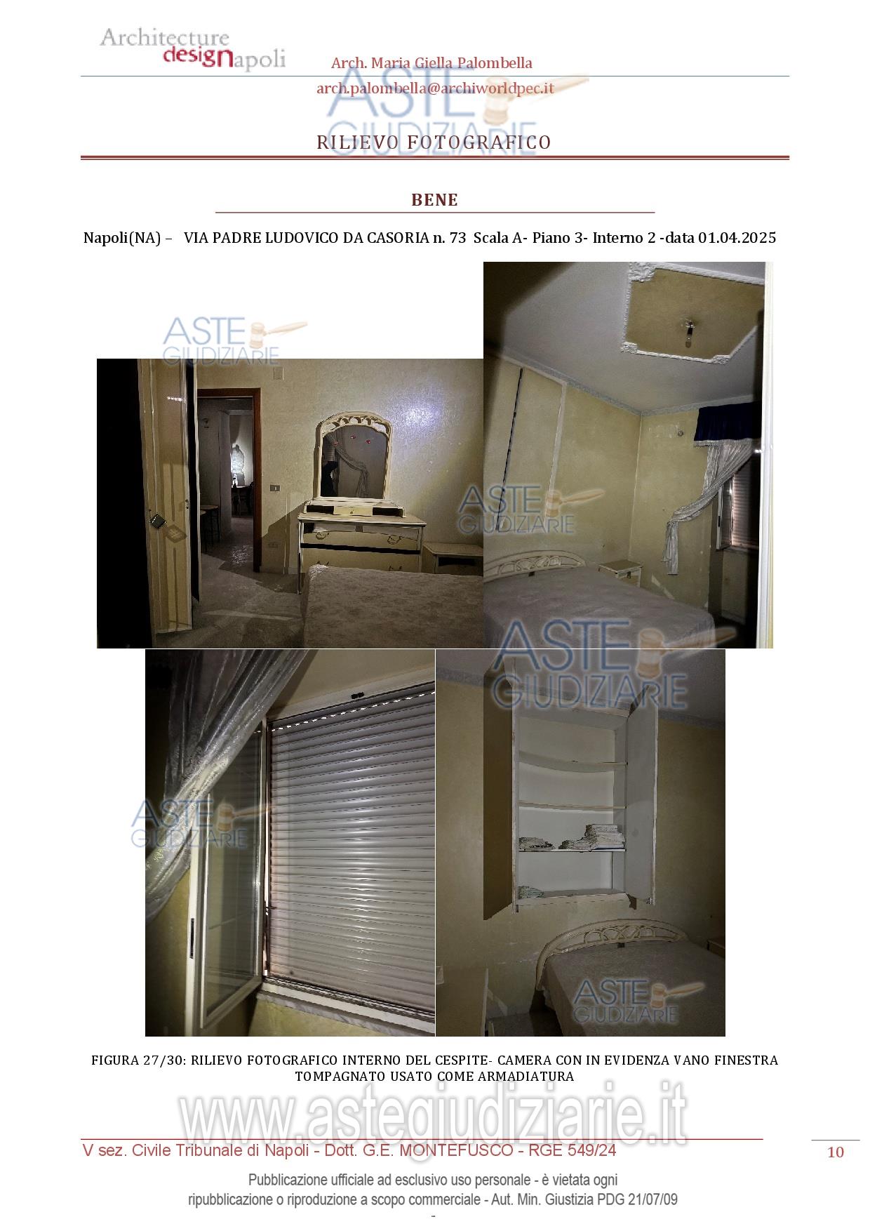 Vendita all'asta Senza incanto, con gara telematica asincrona - LOTTO UNICO: Piena ed intera proprietà di cespite ad uso abitativo composto da ingresso- pranzo, cucina, camera da letto, locale igienico. Prezzo base € 63.000,00 (offerta minima € 47.250,00). Data inizio operazioni di vendita: 10/02/2026 ore 16:30. Giudice Raffaele Montefusco. Professionista delegato alla vendita Avv. Daniela Cicirello - Email "daniela.cicirello@gmail.com"; Tel. 0812209954. Custode Giudiziario Avv. Daniela Cicirello - Email "daniela.cicirello@gmail.com"; Tel. 0812209954. Rif. Tribunale di Napoli - Espropriazione immobiliare (cartabia) n. 549/2024
