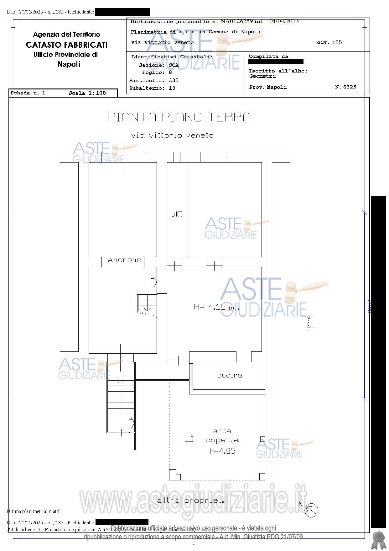 Vendita all'asta Senza incanto, con gara telematica asincrona - LOTTO UNICO: Piena ed intera proprietà di un appartamento sito in Napoli – quartiere Piscinola - alla via Vittorio Veneto n. 155, piano terra, int. 2. L’immobile è composto da soggiorno/cucina (di circa 22,50 mq) in parte soppalcato (per circa 13,70 mq e altezza 1,90 mt), una piccola camera (circa 5,85 mq), un bagno (circa 5,6 mq), una camera da letto (circa 20 mq), balcone ed area esterna/coperta. L’immobile confina a nord con cassa scale, a est con via Vittorio Veneto, a sud con proprietà aliena. Prezzo base € 98.000,00 (offerta minima € 73.500,00). Data inizio operazioni di vendita: 10/02/2026 ore 10:00. Professionista delegato alla vendita Dott. Capobianco Erika - Email "esecuzioni@studioconsulenzacapobianco.it"; Cell. 08119248255; Tel. 08119248255. Custode Giudiziario Dott. Capobianco Erika - Email "esecuzioni@studioconsulenzacapobianco.it"; Cell. 08119248255; Tel. 08119248255. Rif. Tribunale di Napoli - Espropriazione immobiliare (cartabia) n. 169/2024