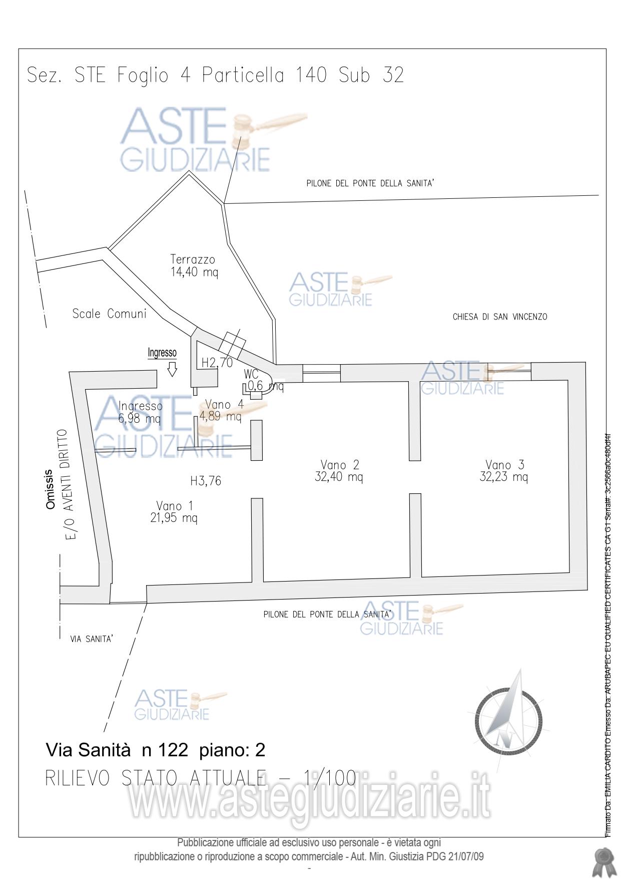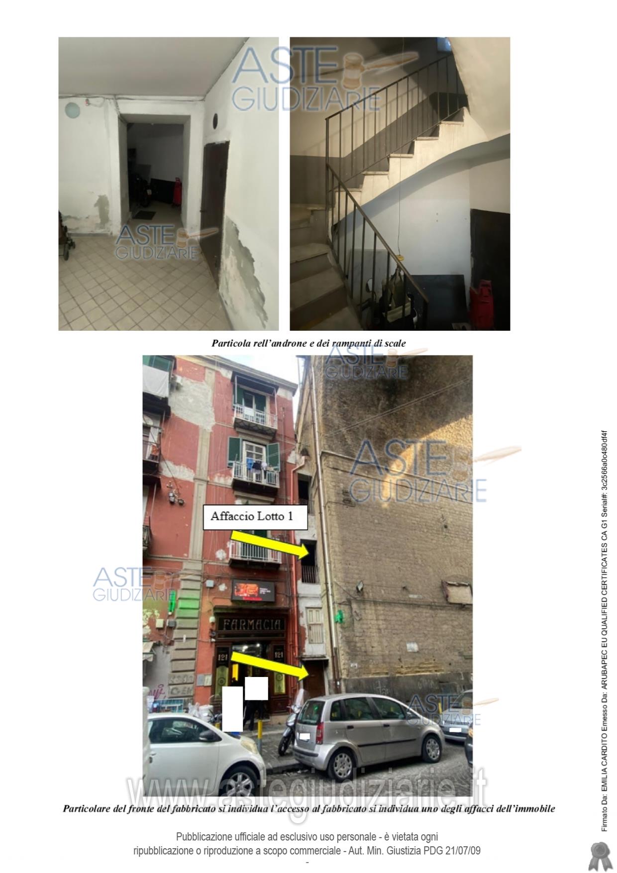 Vendita all'asta Senza incanto, con gara telematica asincrona - LOTTO 1: LOTTO 1: Piena ed intera proprietà di immobile destinato a residenza – A/4 - ubicato in Napoli alla via Sanità n. 122 Piano secondo. L’immobile de quo si compone di 4 vani principali, un disimpegno d’ingresso, un servizio igienico e un terrazzino con affaccio su corte interna. Prezzo base € 69.600,00 (offerta minima € 52.200,00). Data inizio operazioni di vendita: 31/03/2026 ore 16:00. Giudice Miriam Valenti. Professionista delegato alla vendita Avv. Francesco Cipriani Marinelli - Email "francesco@avvciprianimarinelli.it"; Tel. 0815519272. Custode Giudiziario Avv. Francesco Cipriani Marinelli - Email "francesco@avvciprianimarinelli.it"; Tel. 0815519272. Rif. Tribunale di Napoli - Espropriazione immobiliare (cartabia) n. 410/2024