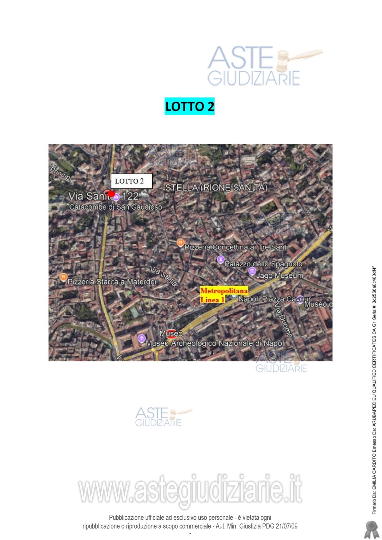 Vendita all'asta Senza incanto, con gara telematica asincrona - LOTTO 2: LOTTO 2: Piena ed intera proprietà di immobile destinato a residenza – A/4 - ubicato in Napoli alla via Sanità n. 122 Piano terzo. L’immobile de quo si compone di 3 vani principali, un disimpegno d’ingresso e un Vano WC Si rileva per l’immobile un’altezza di metri 3,35. Prezzo base € 67.000,00 (offerta minima € 50.250,00). Data inizio operazioni di vendita: 31/03/2026 ore 16:00. Giudice Miriam Valenti. Professionista delegato alla vendita Avv. Francesco Cipriani Marinelli - Email "francesco@avvciprianimarinelli.it"; Tel. 0815519272. Custode Giudiziario Avv. Francesco Cipriani Marinelli - Email "francesco@avvciprianimarinelli.it"; Tel. 0815519272. Rif. Tribunale di Napoli - Espropriazione immobiliare (cartabia) n. 410/2024