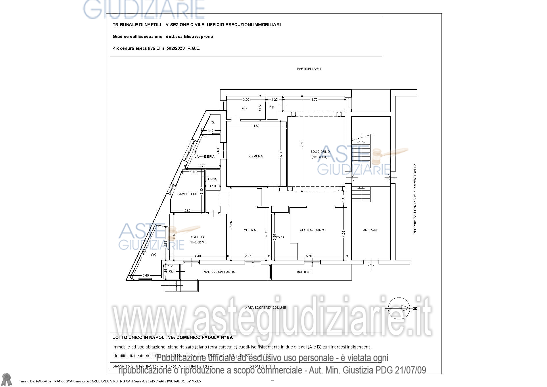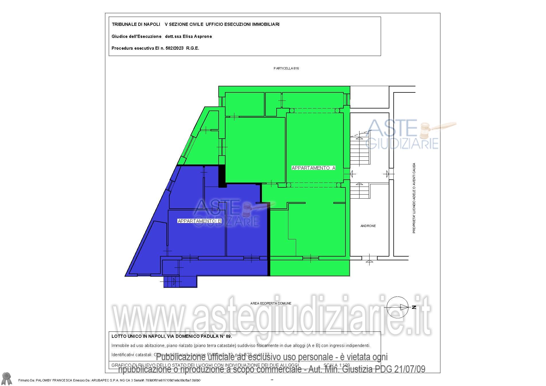 Vendita all'asta Senza incanto, con gara telematica asincrona - LOTTO UNICO: Piena ed intera proprietà di immobile ad uso abitazione di tipo economico, posto al piano rialzato (piano terra catastale), interno 2, con l’ingresso originario dalla porta, sulla sinistra, per chi sale, del pianerottolo di invito del blocco scala condominiale, attualmente frazionato fisicamente in due alloggi (A e B), non comunicanti tra loro, aventi ingressi indipendenti. Prezzo base € 108.800,00 (offerta minima € 81.600,00). Data inizio operazioni di vendita: 21/04/2026 ore 15:00. Professionista delegato alla vendita Avv. Lucia Cerqua - Email "avv.luciacerqua@hotmail.it"; Cell. 3493555470; Tel. 0812159462. Custode Giudiziario Avv. Lucia Cerqua - Email "avv.luciacerqua@hotmail.it"; Cell. 3493555470; Tel. 0812159462. Rif. Tribunale di Napoli - Espropriazione immobiliare (cartabia) n. 582/2023