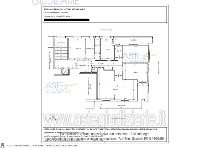 Vendita all'asta Senza incanto - LOTTO UNICO: Piena ed intera proprietà di un immobile sito in Napoli alla Via Scipione Bobbio n. 13, Is. 27, sc. B, piano settimo, int. 22 e riportato al CF alla Sez. CHI, Fg 5 p.lla 142 sub 54 cat. A/2 R.C. 929,62. Appartamento sito in Napoli, quartiere Fuorigrotta, alla Via Scipione Bobbio n. 13, porzione dell’edificio denominato Isolato 27 interno al Parco Residenziale San Paolo, composto da sette piani più il rialzato ad uso abitazione civile, oltre il piano seminterrato ad uso autorimessa e locali di deposito. Prezzo base € 382.000,00 (offerta minima € 286.500,00). Data vendita 27/05/2026 ore 15:30. Giudice Dott. Claudia Colicchio. Professionista delegato alla vendita Not. Andrea Valente - Email "richiestavisita@notaioandreavalente.it"; Tel. 081403504. Rif. Tribunale di Napoli - Contenzioso civile n. 30249/2022