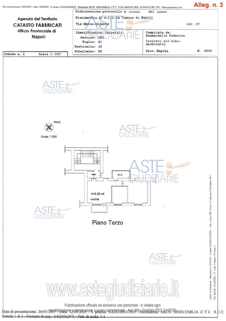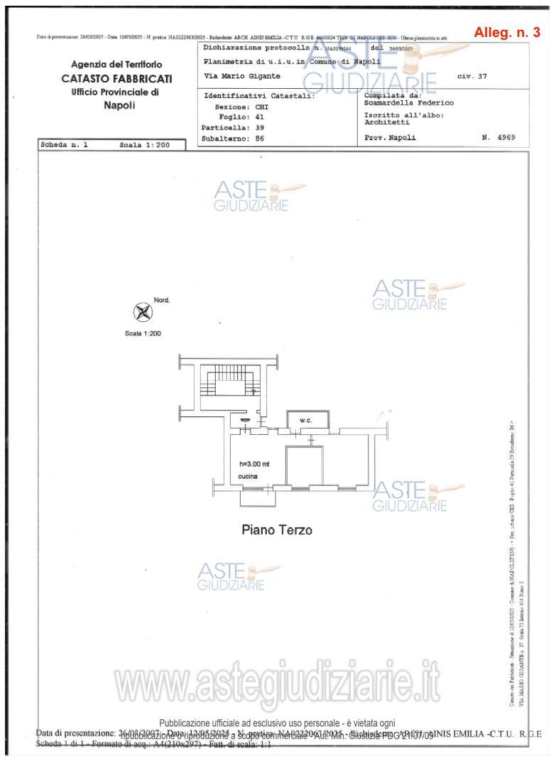 Vendita all'asta Senza incanto, con gara telematica asincrona - LOTTO UNICO: Piena ed intera proprietà di immobile in Napoli alla via Mario Gigante n. 37, al piano terzo, scala 71, int. 414, riportato in C.F. del Comune di Napoli con i seguenti dati: sez. CHI, foglio 41, p.lla 39, sub 86, cat. A/3, cl. 2, consistenza 3,5 vani, R.C. 397,67. Prezzo base € 75.800,00 (offerta minima € 56.850,00). Data inizio operazioni di vendita: 19/05/2026 ore 16:00. Professionista delegato alla vendita Avv. Luca Vitale - Email "lucavitale@studiolegalevitale.net"; Cell. 3333894703; Tel. 0818733321. Custode Giudiziario Avv. Luca Vitale - Email "lucavitale@studiolegalevitale.net"; Cell. 3333894703; Tel. 0818733321. Rif. Tribunale di Napoli - Espropriazione immobiliare (cartabia) n. 466/2024