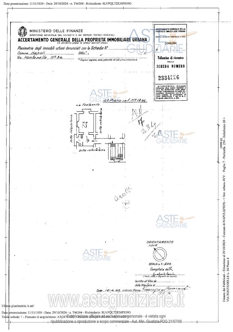 Vendita all'asta Senza incanto, con gara telematica asincrona - LOTTO UNICO: LOTTO UNICO-– piena ed intera proprietà di appartamento ubicato in Napoli alla via Fontanelle n. 34, piano 4; composto da ingresso, wc, e soggiorno cucina, oltre n.2 camere da letto e corridoio poste su soppalco; DATI CATASTALI: N.C.E.U. di Napoli Sez. AVV., foglio 7, particella 234, subalterno20, piano IV, zona censuaria 7 , categoria A/4, classe 6, vani 3, Rendita euro 178,18, indirizzo Via Fontanelle.n.34. Prezzo base € 33.336,90 (offerta minima € 25.002,67). Data inizio operazioni di vendita: 09/06/2026 ore 11:00. Professionista delegato alla vendita Avv. Marco Farina - Email "marcofarina@avvocatinapoli.legalmail.it"; Cell. 335476830; Tel. 0812404259. Custode Giudiziario Avv. Marco Farina - Email "marcofarina@avvocatinapoli.legalmail.it"; Cell. 335476830; Tel. 0812404259. Rif. Tribunale di Napoli - Espropriazione immobiliare (cartabia) n. 473/2024