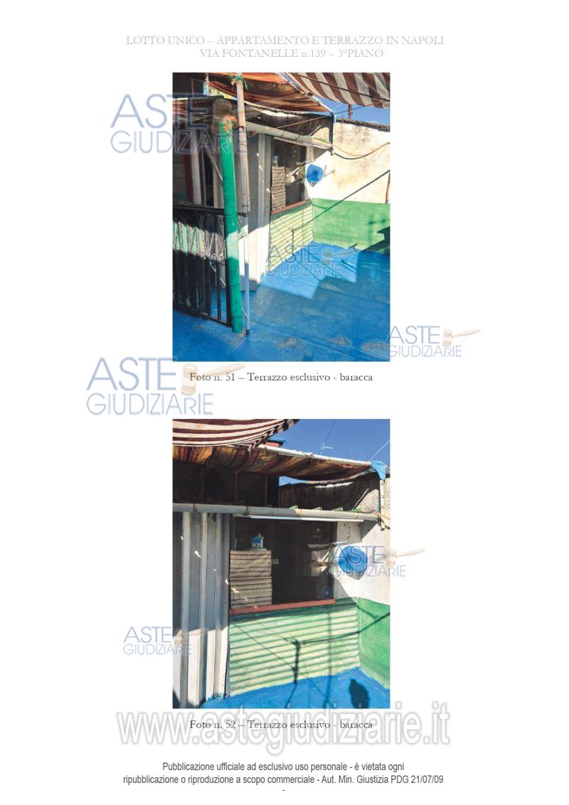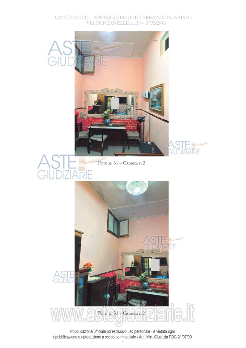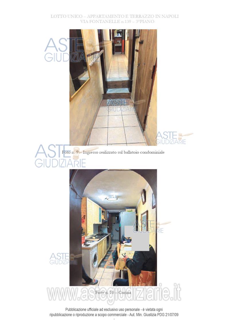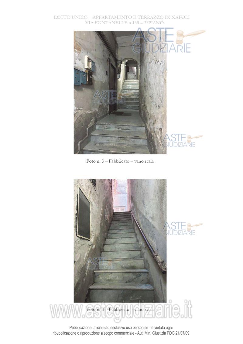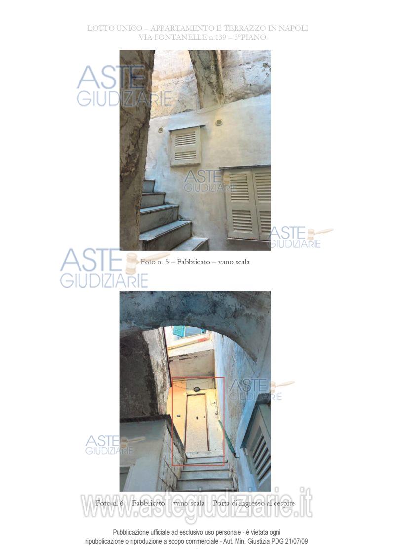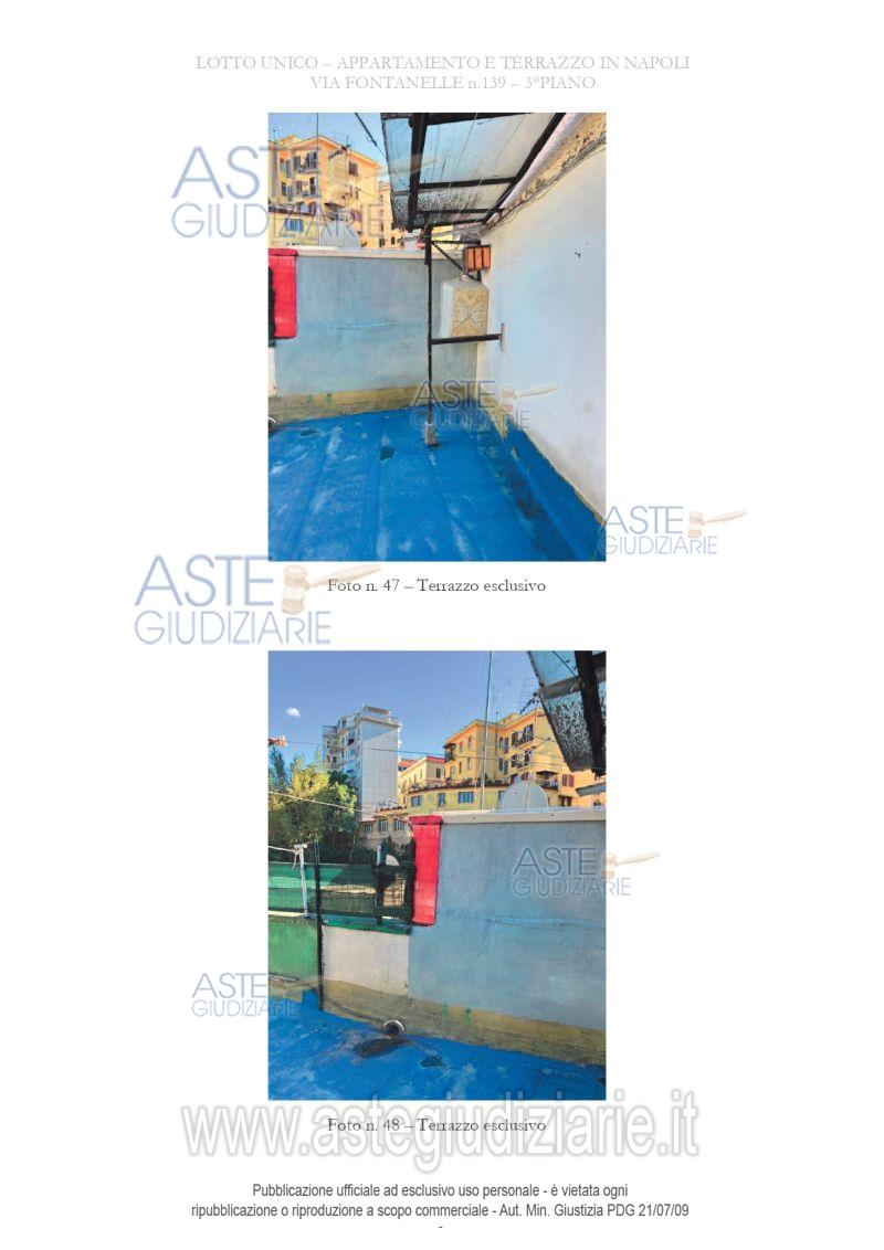 Vendita all'asta Senza incanto, con gara telematica asincrona - LOTTO UNICO: - Piena ed intera proprietà (quota di 1/1) di APPARTAMENTO in Napoli, via Fontanelle n. 139, piano 3, vani 3, oltre terrazzo di copertura al piano quarto. Prezzo base € 72.000,00 (offerta minima € 54.000,00). Data inizio operazioni di vendita: 07/07/2026 ore 14:30. Professionista delegato alla vendita Avv. Paola Capobianco - Email "paolacapobianco@alice.it"; Cell. 3808466812; Tel. 081405408. Custode Giudiziario Avv. Paola Capobianco - Email "paolacapobianco@alice.it"; Cell. 3808466812; Tel. 081405408. Rif. Tribunale di Napoli - Espropriazione immobiliare (cartabia) n. 316/2025