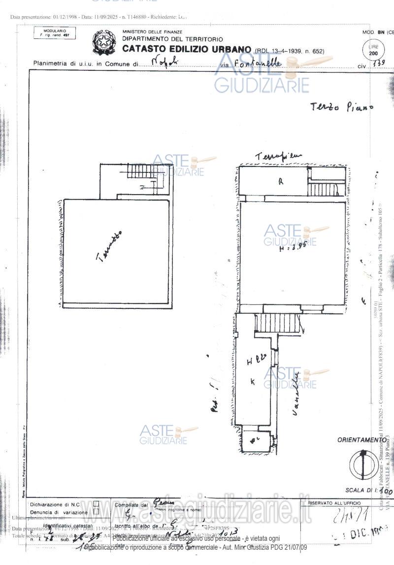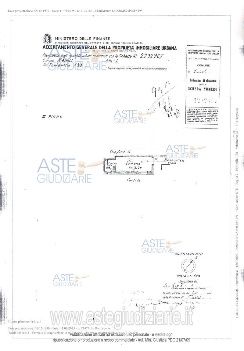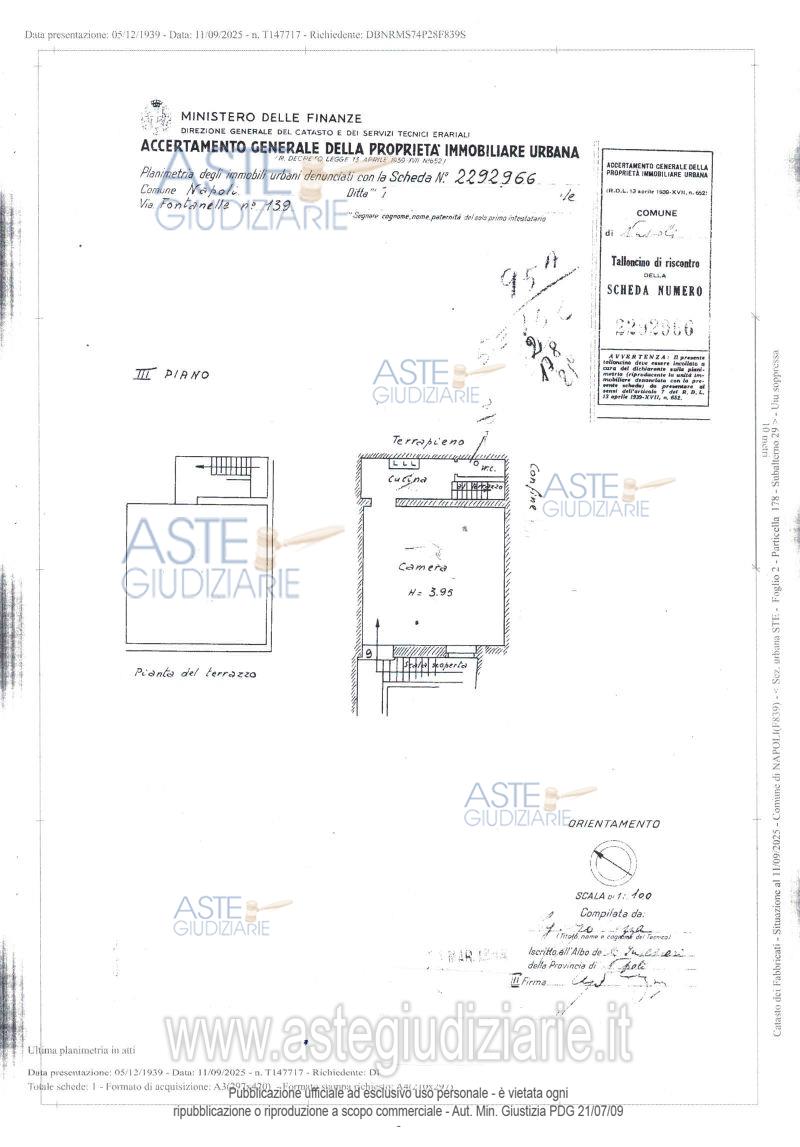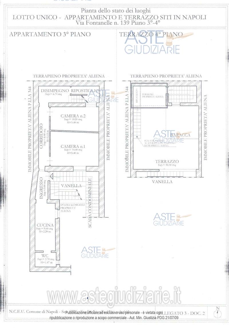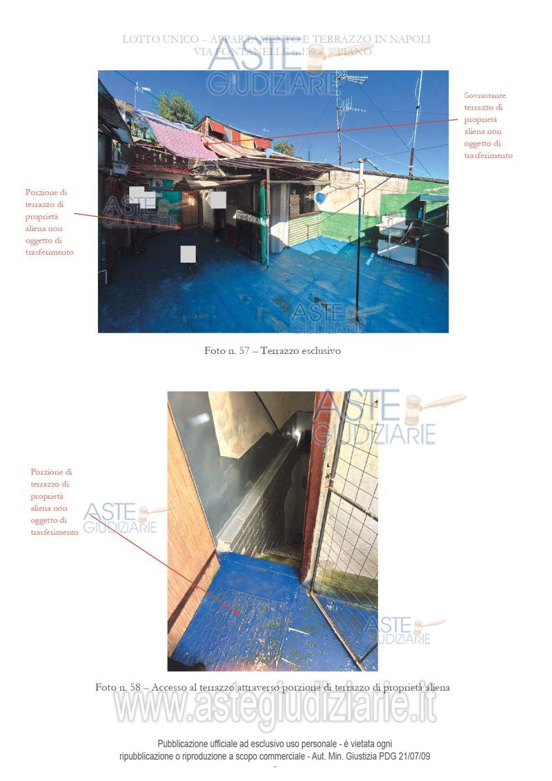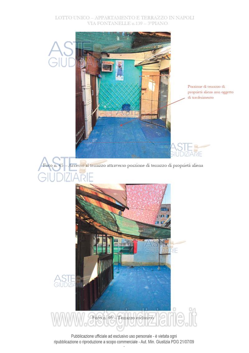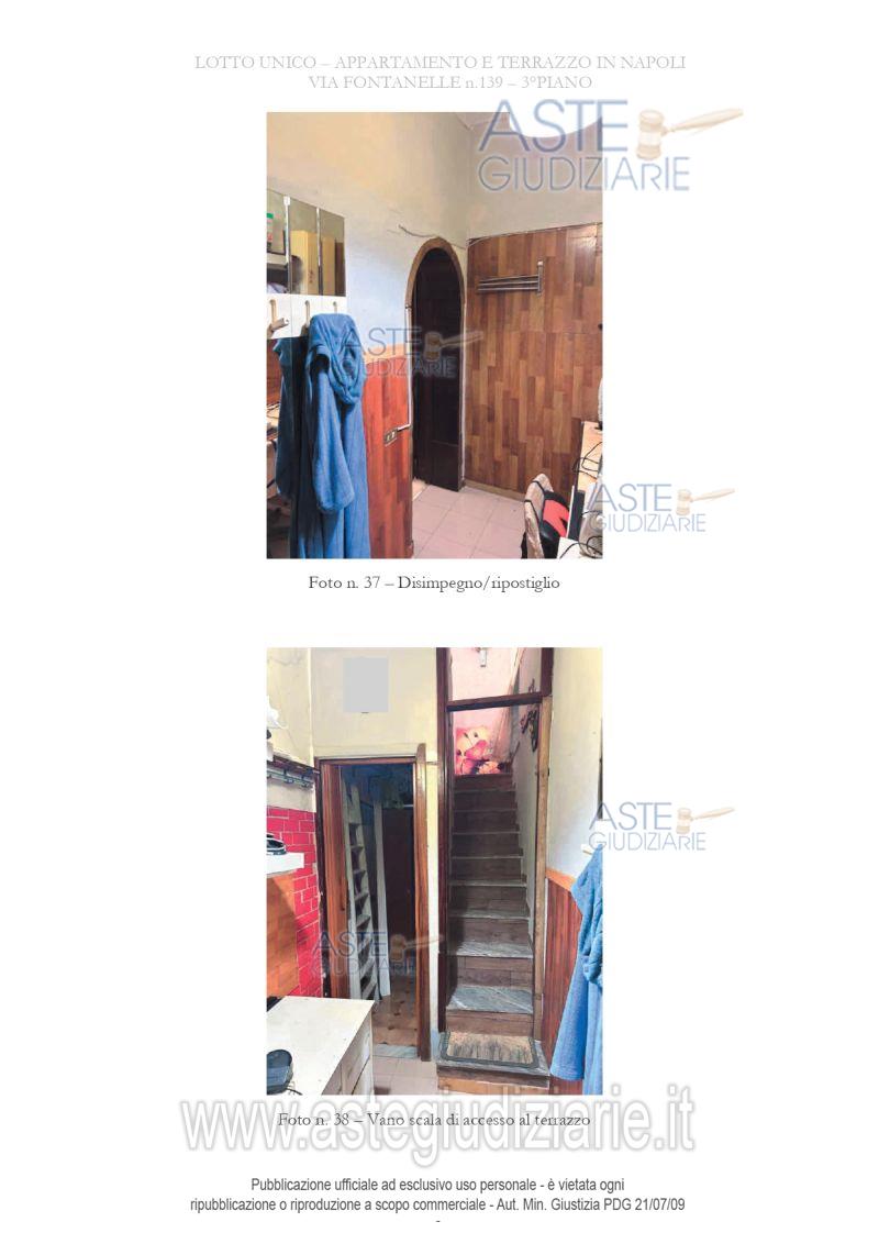 Vendita all'asta Senza incanto, con gara telematica asincrona - LOTTO UNICO: - Piena ed intera proprietà (quota di 1/1) di APPARTAMENTO in Napoli, via Fontanelle n. 139, piano 3, vani 3, oltre terrazzo di copertura al piano quarto. Prezzo base € 72.000,00 (offerta minima € 54.000,00). Data inizio operazioni di vendita: 07/07/2026 ore 14:30. Professionista delegato alla vendita Avv. Paola Capobianco - Email "paolacapobianco@alice.it"; Cell. 3808466812; Tel. 081405408. Custode Giudiziario Avv. Paola Capobianco - Email "paolacapobianco@alice.it"; Cell. 3808466812; Tel. 081405408. Rif. Tribunale di Napoli - Espropriazione immobiliare (cartabia) n. 316/2025