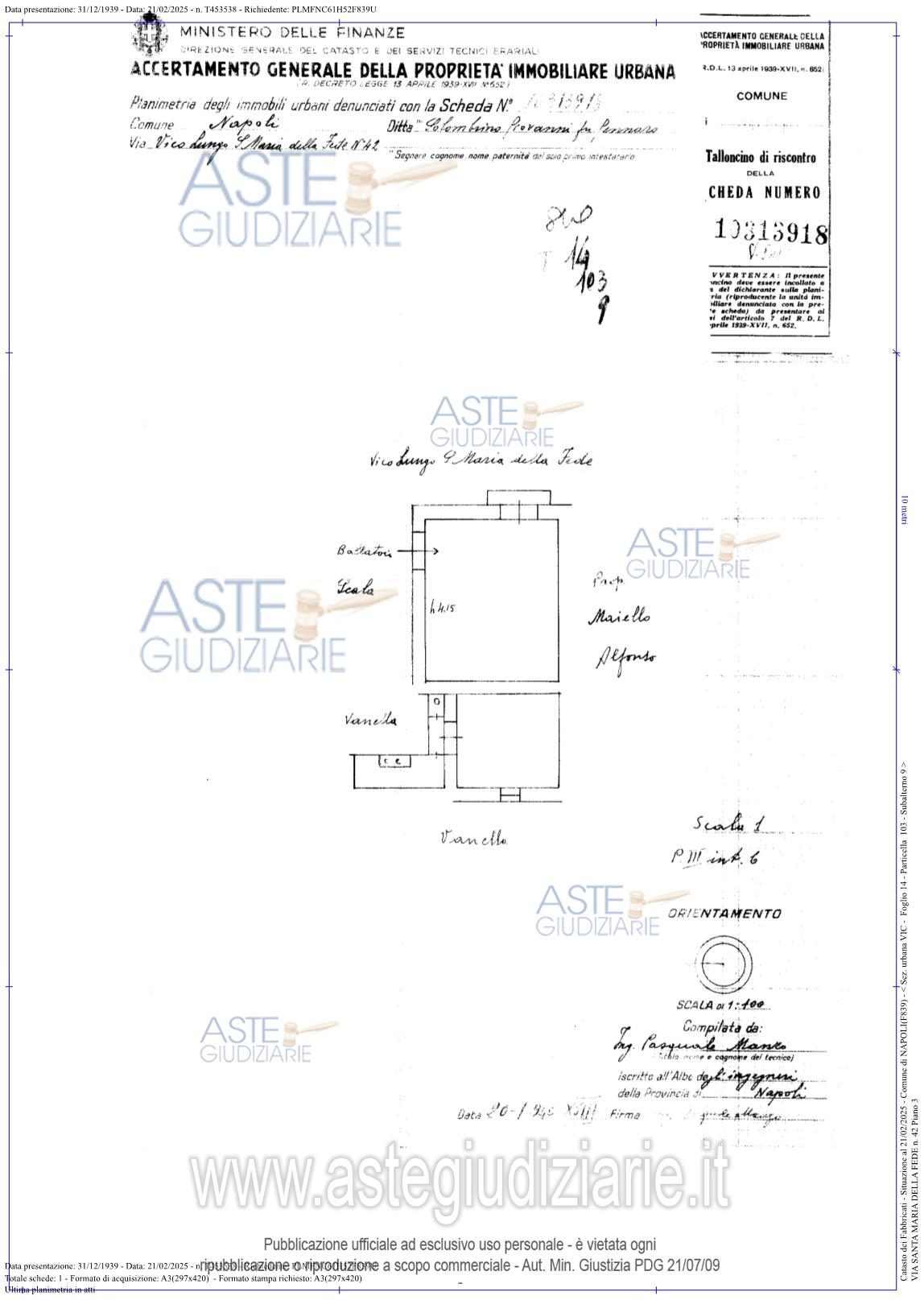Custode Giudiziario: Avv. Mariacristina Postorino - Email "postorino.cristina@gmail.com"; Tel. 081/19001927; Cell. 338/4798940.