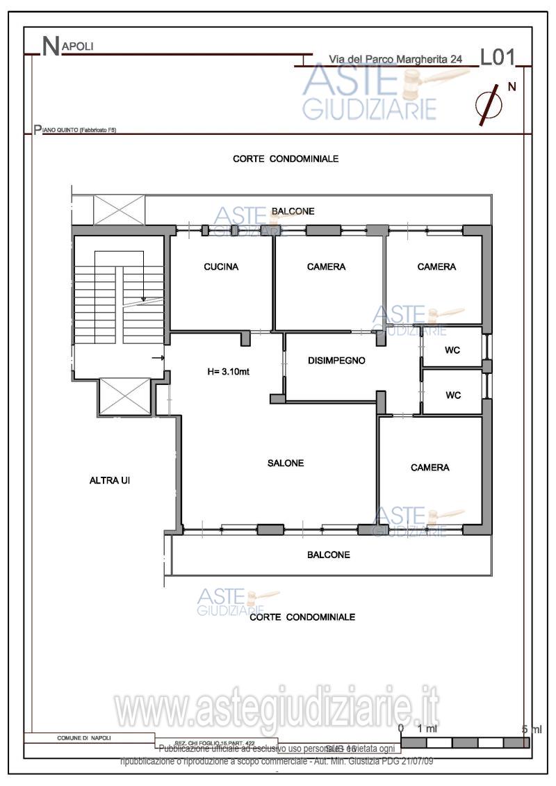 Vendita all'asta Senza incanto, con gara telematica asincrona - LOTTO 1: Appartamento posto al piano quinto in Napoli alla via del Parco Margherita n. 24 e composto da ampio soggiorno, cucina abitabile, disimpegni, tre camere, due bagni e annessi balconi, per una superficie commerciale pari a circa 145,00 mq. Prezzo base € 786.286,00 (offerta minima € 589.714,50). Data inizio operazioni di vendita: 04/11/2025 ore 15:00. Professionista delegato alla vendita Avv. Giorgia Viola - Email "avv.giorgiaviola@libero.it"; Tel. 08118858628. Custode Giudiziario Avv. Giorgia Viola - Email "avv.giorgiaviola@libero.it"; Tel. 08118858628. Rif. Tribunale di Napoli - Esecuzione immobiliare post legge 80 n. 580/2019