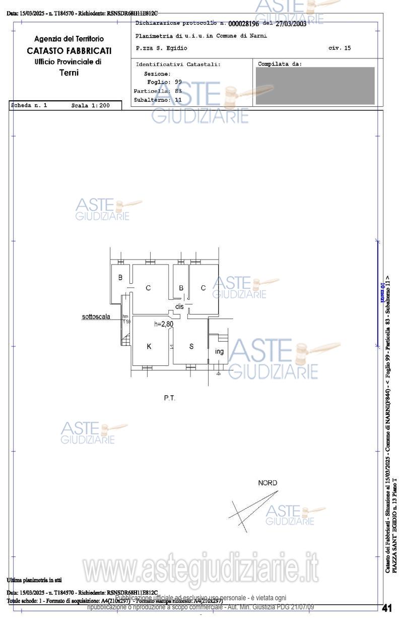 Vendita all'asta Senza incanto, con gara telematica asincrona - LOTTO 2: appartamento in oggetto è posto al piano terra ed è composto da 5,5 vani catastali, consistenti in una camera da letto matrimoniale di s.u. mq. 17.25 dotata di bagno esclusivo di s.u. mq. 7.40, oltre a ripostiglio sottoscale s.c. mq. 1.25, una seconda camera da letto di s.u. mq. 13.50, un bagno di mq. 5.04, un disimpegno di s.u. mq. 2.16, una cucina/pranzo di s.u. mq. 17.30 e un soggiorno di s.u. mq. 14.90. Superficie utile complessiva (escludendo l'ingresso dell'atrio comune) pari a mq. 78,80. Prezzo base € 38.250,00 (offerta minima € 28.687,50). Data inizio operazioni di vendita: 10/06/2026 ore 14:15. Giudice Francesco Angelini. Professionista delegato alla vendita Avv. Andrea Antoniucci - Email "a.antoniucci69@gmail.com"; Tel. 0744682386. Custode Giudiziario Avv. Andrea Antoniucci - Email "a.antoniucci69@gmail.com"; Tel. 0744682386. Rif. Tribunale di Terni - Espropriazione immobiliare (cartabia) n. 96/2024