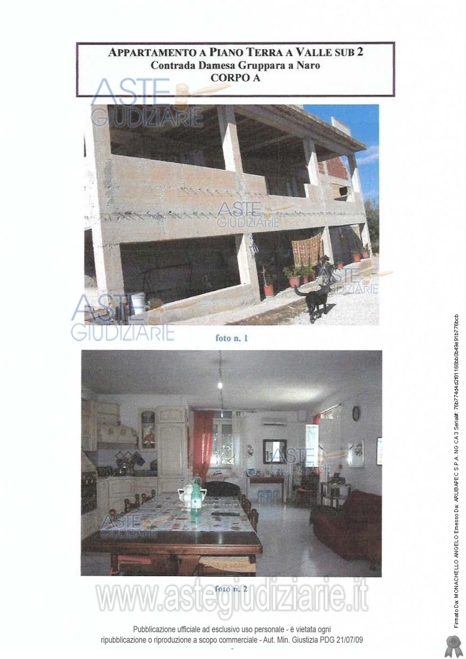 Vendita in attesa dell'emissione del nuovo bando d'asta. LOTTO 6: Lotto 6: 500/1000 di appartamento in Naro C.da Damesa Gruppara di mq 156,68 c.ca al NCEU fg. 142 part. 350 sub 2, 500/1000 di deposito in Naro C.da Damesa Gruppara di mq 101,19 c.ca al NCEU fg. 142 part. 350 sub 3, 500/100 di appartamento in corso di costruzione in Naro C.da Damesa Gruppara di mq 468,77 c.ca al NCEU fg. 142 mapp. 350 sub 4. Ultimo prezzo base € 30.892,50 (offerta minima € 23.170,00). Professionista delegato alla vendita Dott. Giuseppe Antonio Lentini - Email "giuseppeantoniolentini@gmail.com"; Cell. 3385659043; Tel. 0922553407. Custode Giudiziario Dott. Giuseppe Antonio Lentini - Email "giuseppeantoniolentini@gmail.com"; Cell. 3385659043; Tel. 0922553407. Rif. Tribunale di Agrigento - Esecuzione immobiliare post legge 80 n. 162/2011