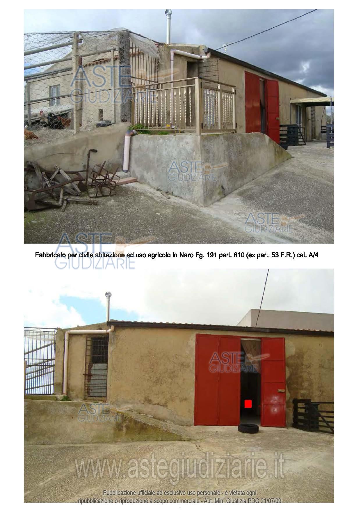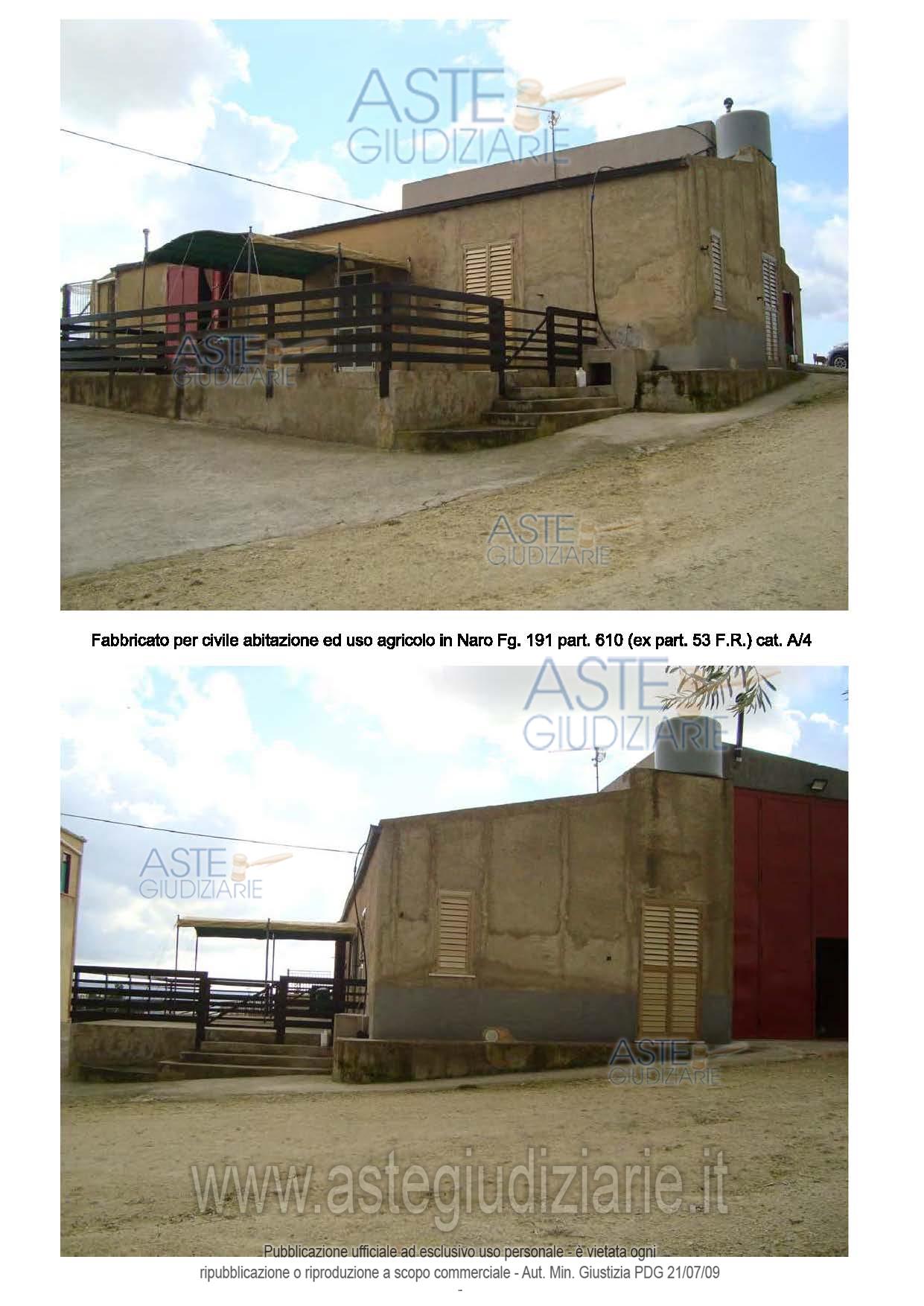 Vendita all'asta Senza incanto, con gara telematica sincrona mista - LOTTO 6: Fabbricato ad uso abitativo e magazzini per uso agricolo in Naro, C.da Mintina di Badia, mq. 264 catastali, vani 10.5. piano terra. Costruito prima del 1967. Prezzo base € 7.300,00 (offerta minima € 5.500,00). Data vendita 11/12/2025 ore 17:00. Professionista delegato alla vendita Avv. Luca Vetro - Email "info@avvocatovetro.eu"; Tel. 092223032. Custode Giudiziario Avv. Luca Vetro - Email "info@avvocatovetro.eu"; Tel. 092223032. Rif. Tribunale di Agrigento - Esecuzione immobiliare post legge 80 n. 219/2018