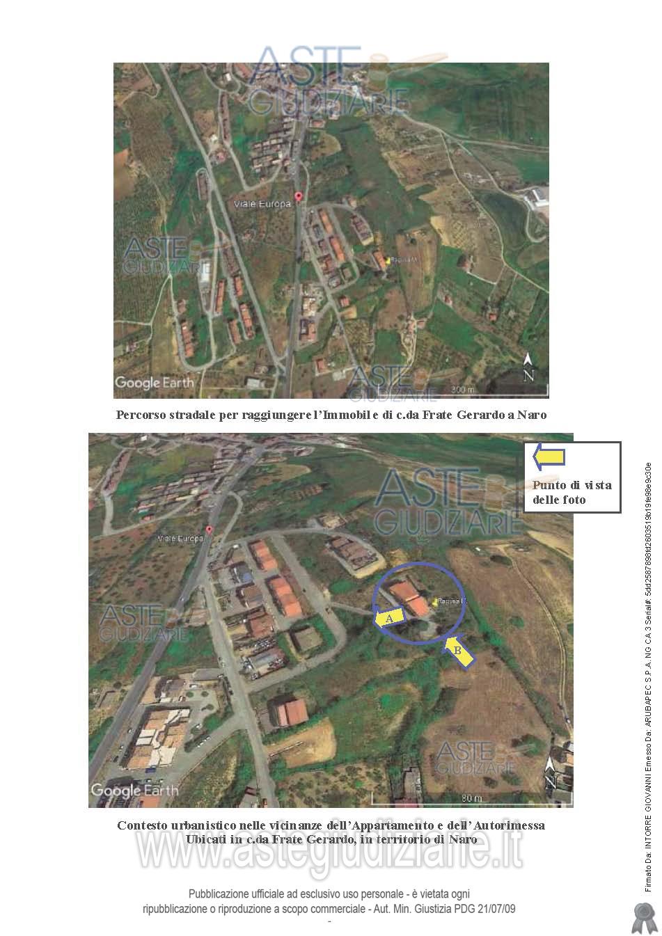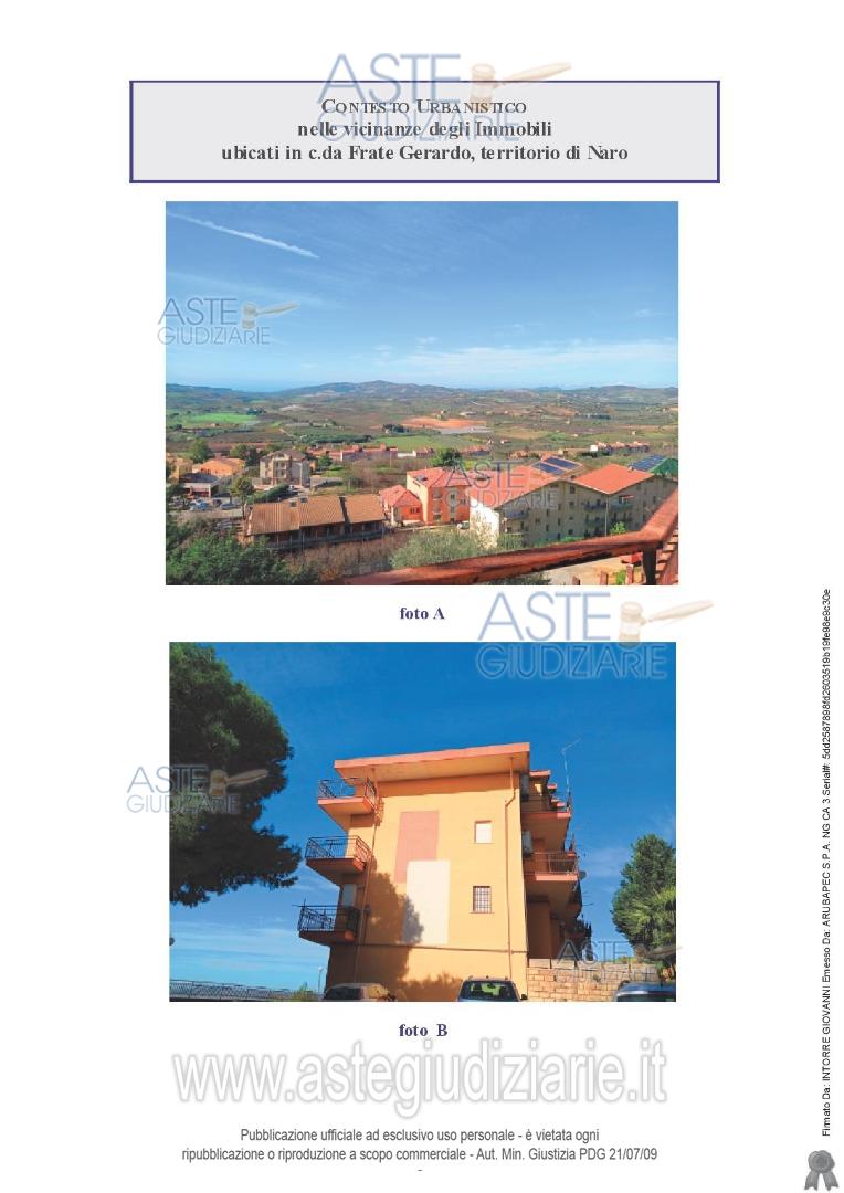 Vendita all'asta Senza incanto, con gara telematica sincrona mista - LOTTO UNICO: LOTTO UNICO: Piena proprietà per la quota di 1000/1000 a Naro, C.da Fratel Gerardo, traversa viale Europa di: A. appartamento al II piano, indicato al NCEU al F. 85, part. 983, sub 18, cat. A/2, classe 3, superficie catastale mq 125. B. autorimessa al piano terra, al NCEU al F. 85, part. 983, sub 11, cat. C/6, classe 1, superficie catastale mq 32. Entrambi presentano le irregolarità urbanistico-edilizie sanabili con le modalità stabilite in perizia. Occupati. Prezzo base € 19.145,36 (offerta minima € 14.359,02). Data vendita 05/06/2026 ore 17:00. Professionista delegato alla vendita Avv. Maria Militello - Email "avv.mariamilitello@gmail.com"; Cell. 3331023438; Tel. 0922-470142. Custode Giudiziario Avv. Maria Militello - Email "avv.mariamilitello@gmail.com"; Cell. 3331023438; Tel. 0922-470142. Rif. Tribunale di Agrigento - Esecuzione immobiliare post legge 80 n. 91/2021