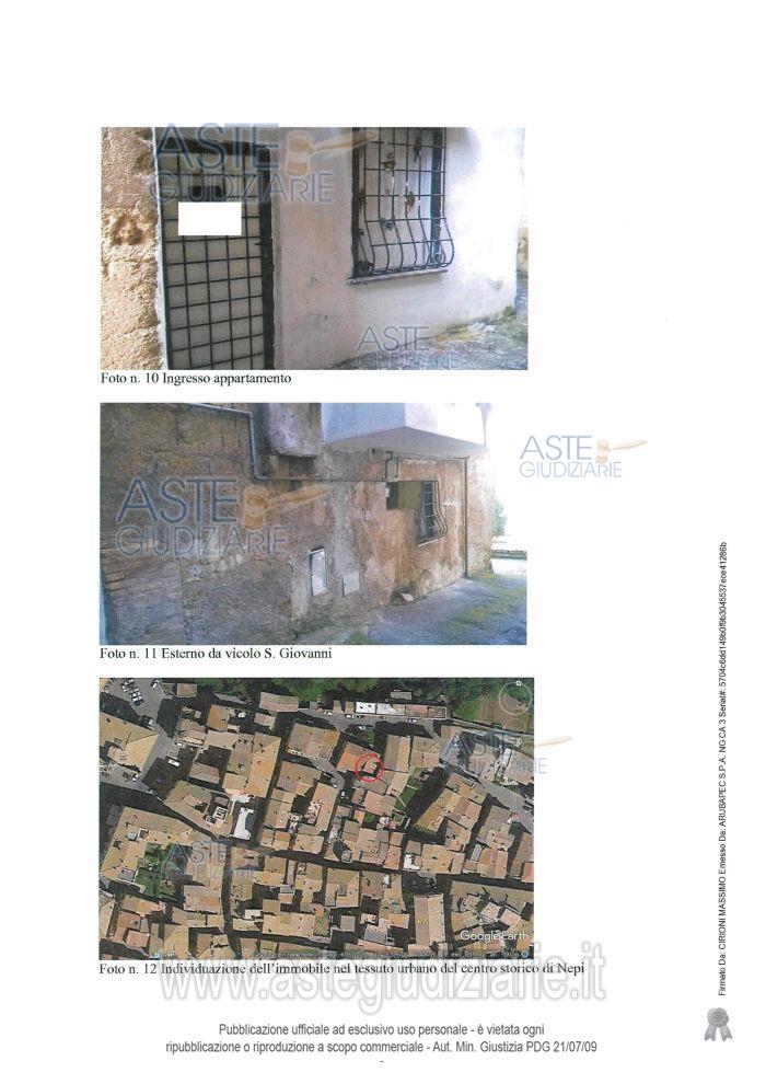 Vendita all'asta Senza incanto, con gara telematica asincrona - LOTTO UNICO: Diritti di 1/1 piena proprietà su appartamento sito in Nepi Piazza Padella n.3 al Piano terra di mq 34 h media ml 2.40 + 2,2 mq di ripostiglio non abitabile con h media di ml 1.40.Non vi è certificato di agibilità ed il ctu non ritiene che allo stato attuale le normative vigenti consentano di ottenerlo. Vi sono abusi sanabili secondo costi e modalità illustrati in perizia. L'immobile è stato oggetto di contratto di locazione ma il Ctu non ha rinvenuto proroghe. Prezzo base € 16.000,00 (offerta minima € 12.000,00). Data inizio operazioni di vendita: 26/11/2025 ore 10:00. Professionista delegato alla vendita Avv. Alfonsina Lamoratta - Email "avv.lamoratta@libero.it"; Tel. 0761341922. Custode Giudiziario Avv. Alfonsina Lamoratta - Email "avv.lamoratta@libero.it"; Tel. 0761341922. Rif. Tribunale di Viterbo - Esecuzione immobiliare post legge 80 n. 181/2018