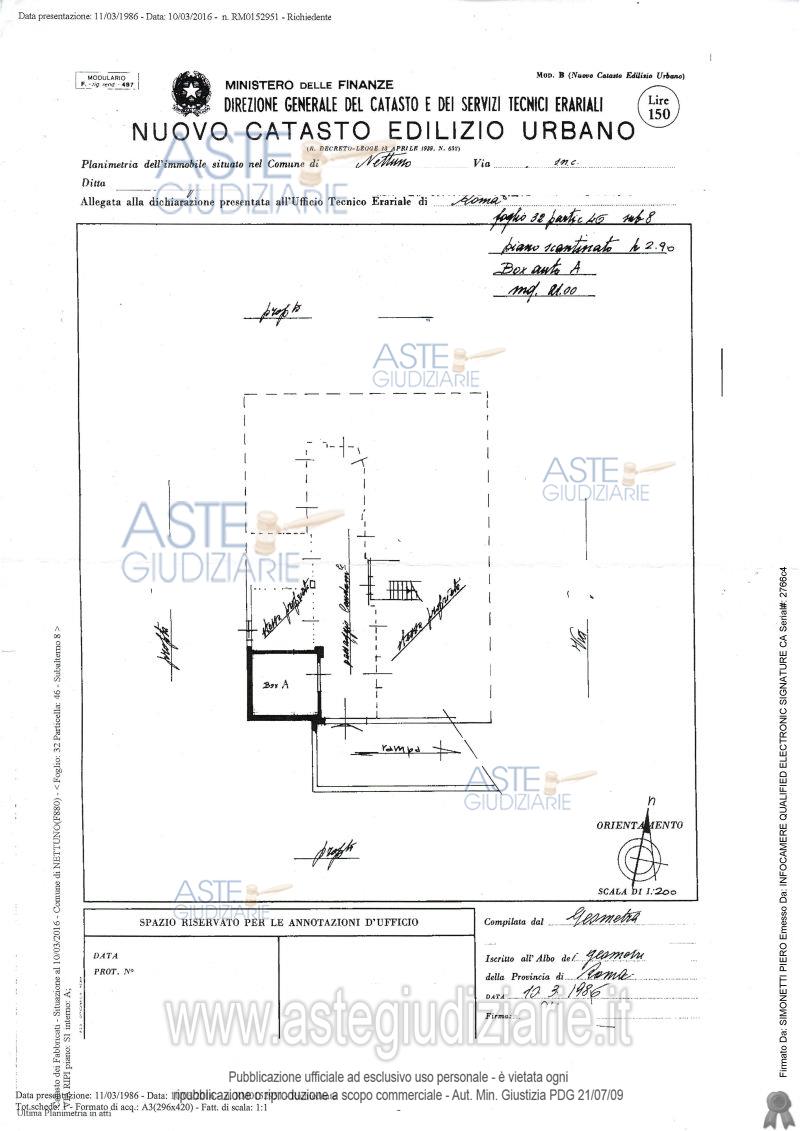 Vendita all'asta Senza incanto, con gara telematica asincrona - LOTTO UNICO: Appartamento ubicato a Nettuno (RM) – Via Ripi n.13 (rampa) e n.15 (ingresso condominiale), interno 1/C, piano terra. Trattasi di appartamento adibito ad abitazione (interno 1/C) e del garage (box A) ubicato al piano seminterrato sottostante, entrambi di proprietà dell'esecutato. Prezzo base € 75.375,00 (offerta minima € 56.531,25). Data inizio operazioni di vendita: 11/06/2026 ore 10:00. Giudice Anna Luisa Di Serafino.
