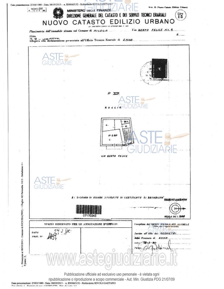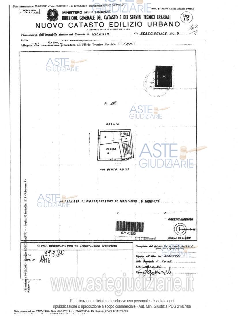Vendita all'asta Senza incanto, con gara telematica sincrona mista - LOTTO 3: Diritto di proprietà 1/1 Appartamento adibito a civile abitazione sito in Nicosia alla Via S. Felice n.9, censito al Catasto Fabbricati del Comune di Nicosia al fg.82 part. 1613, sub 4, Cat. A/4, Zona 1, Classe 2, Vani 2,5, Sup. 62 mq, piano terzo, rendita € 74,89, e Sub. 5, Cat. A/4, Zona 1, Classe 2, Vani 3, Sup. 61 mq, piano quarto, rendita € 89,86. Prezzo base € 16.041,93 (offerta minima € 12.031,44). Data vendita 14/04/2026 ore 10:30. Giudice Davide Palazzo. Professionista delegato alla vendita Avv. Giovanni Passamonte - Email "avv.giovannipassamonte@gmail.com"; Cell. 3805425478; Tel. 0935577881. Custode Giudiziario Avv. Giovanni Passamonte - Email "avv.giovannipassamonte@gmail.com"; Cell. 3805425478; Tel. 0935577881. Rif. Tribunale di Enna ex Tribunale di Nicosia - Esecuzione immobiliare post legge 80 n. 37/2012