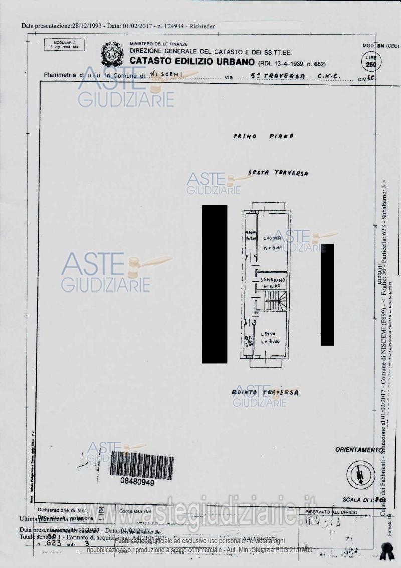 Vendita all'asta Senza incanto, con gara telematica sincrona mista - LOTTO 1: Intero appartamento posto al primo piano ad uso civile abitazione sito nel Comune di Niscemi Via Villaroel n. 12, censita al Catasto al N.C.E.U. foglio di mappa n. 50, particella n. 623 sub 3 – Cat. A/4 – classe 3 – consistente in 3,5 vani – rendita € 75,00 mq. Prezzo base € 11.390,45 (offerta minima € 8.542,99). Data vendita 29/07/2026 ore 09:30. Professionista delegato alla vendita: Avv. Florinda Iudici - Email "florinda.iudici@tiscali.it"; Tel. 0933/911528; Cell. 347/8270965.