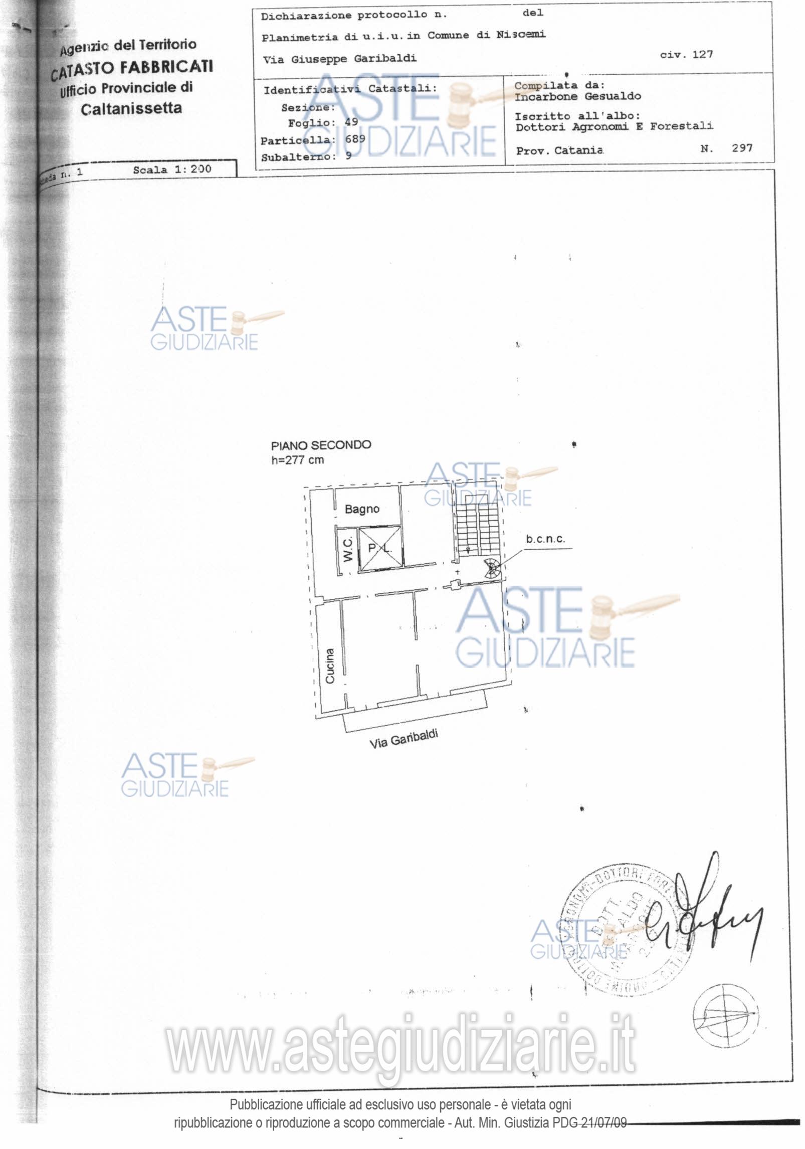 Vendita all'asta Senza incanto, con gara telematica sincrona mista - LOTTO 2: casa per civile abitazione sita in Niscemi Via Garibaldi 119 primo piano identificata catastalmente al catasto urbano di Niscemi al foglio 49, particella 689 sub.8 ctg. A/3 cl.1 vani 4 mq.143,66 rendita €.116,51. Prezzo base € 26.935,44 (offerta minima € 20.201,58). Data vendita 19/12/2025 ore 12:00. Professionista delegato alla vendita Avv. Enzo Mattia - Email "enmatt61@gmail.com"; Cell. 3398106133; Tel. 093355669. Custode Giudiziario Avv. Enzo Mattia - Email "enmatt61@gmail.com"; Cell. 3398106133; Tel. 093355669. Rif. Tribunale di Caltagirone - Esecuzione immobiliare post legge 80 n. 43/1995