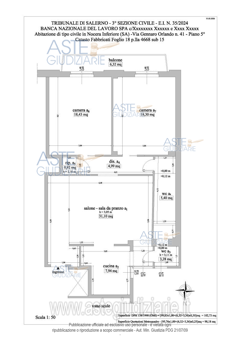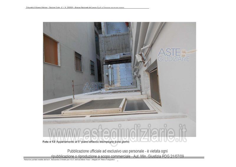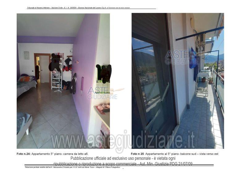 Vendita all'asta Senza incanto, con gara telematica asincrona - LOTTO UNICO: L’immobile si trova a Nocera Inferiore, in Via Gennaro Orlando 41, situato al quinto piano di un edificio in cemento armato con sette piani fuori terra. Prezzo base € 95.000,00 (offerta minima € 71.250,00). Data inizio operazioni di vendita: 09/06/2026 ore 17:30. Professionista delegato alla vendita Dott. Roberto Laiso. Custode Giudiziario Dott. Roberto Laiso - Email "studiolaiso@hotmail.com"; Cell. 3487719748; Tel. 0890978842. Rif. Tribunale di Nocera Inferiore - Espropriazione immobiliare (cartabia) n. 35/2024