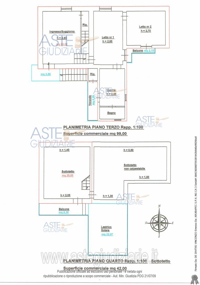 Vendita all'asta Senza incanto - LOTTO UNICO: Proprietà esclusiva di appartamento di tipo ultrapopolare posto al terzo e quarto piano, composto da n. 2 camere da letto, una cucina, un bagno, n. 2 ripostigli, un ingresso/soggiorno, un sottotetto, n. 2 balconi e una veranda, per complessivi 135,00 mq di superficie calpestabile. Prezzo base € 46.427,85 (offerta minima € 34.820,89). Data vendita 16/06/2026 ore 16:00. Giudice Dott. Luigi Bobbio. Professionista delegato alla vendita Avv. Germaine Popolo. Custode Giudiziario Avv. Germaine Popolo - Email "germainepopolo@hotmail.com"; Cell. 3382088519; Tel. 0818621083. Rif. Tribunale di Nocera Inferiore - Esecuzione immobiliare post legge 80 n. 145/2014