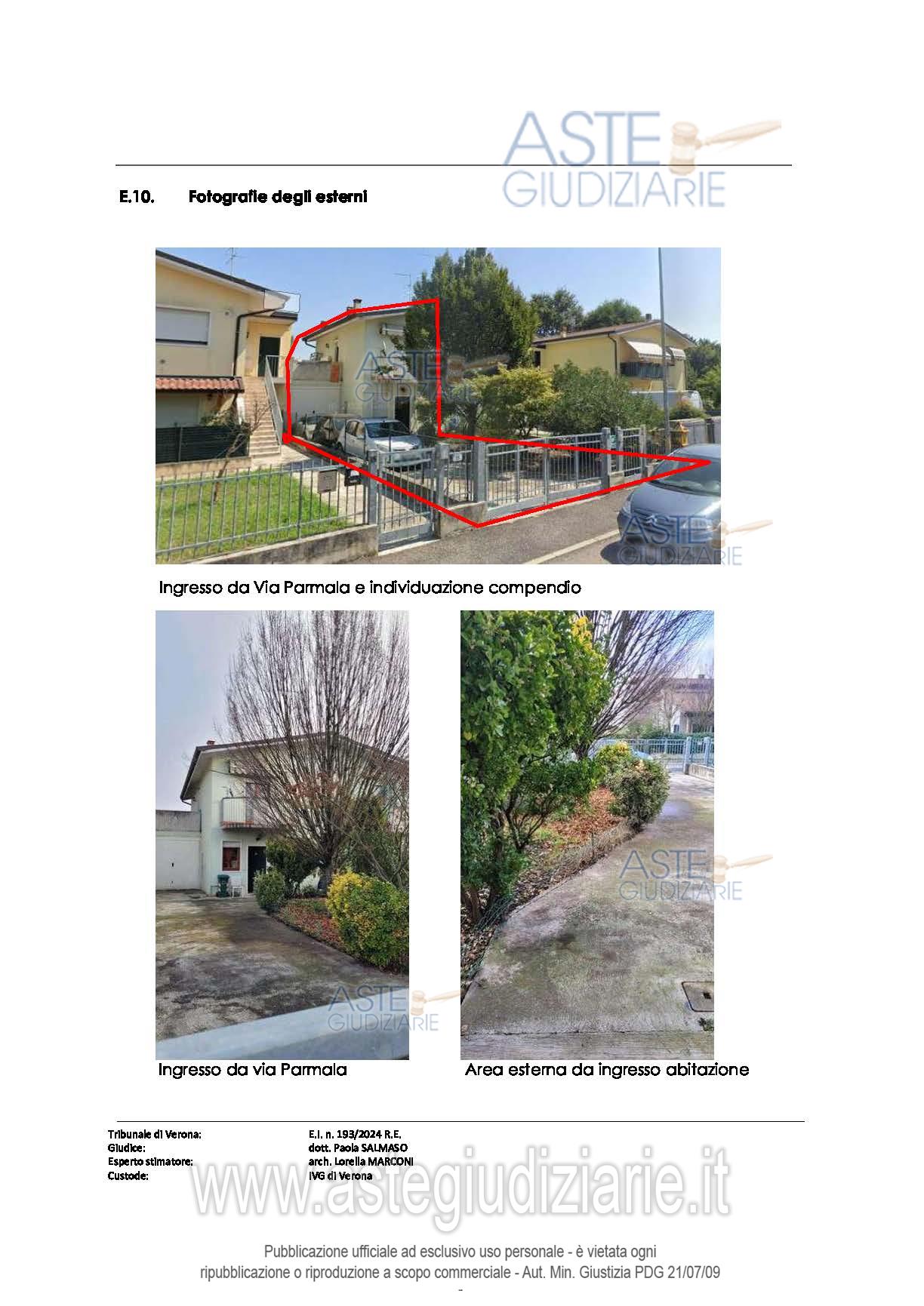 Vendita in attesa dell'emissione del nuovo bando d'asta. LOTTO Unico: In Comune di Nogara (VR) , Via Parmala n. 17, piena proprietà di porzione di casa a schiera su due piani fuori terra con annesse due porzioni di corte esclusiva e con pertinenziale autorimessa al piano terra. Ultimo prezzo base € 64.000,00 (offerta minima € 48.000,00). Giudice Dott. Paola Salmaso. Professionista delegato alla vendita Not. Giampaolo Mondardini - Email "segreteria@notaiveronesiassociati.it"; Tel. 045/8530137. Custode Giudiziario Srls Vegi - Email "info@ivgverona.it"; Tel. 0459813484. Rif. Tribunale di Verona - Espropriazione immobiliare (cartabia) n. 193/2024