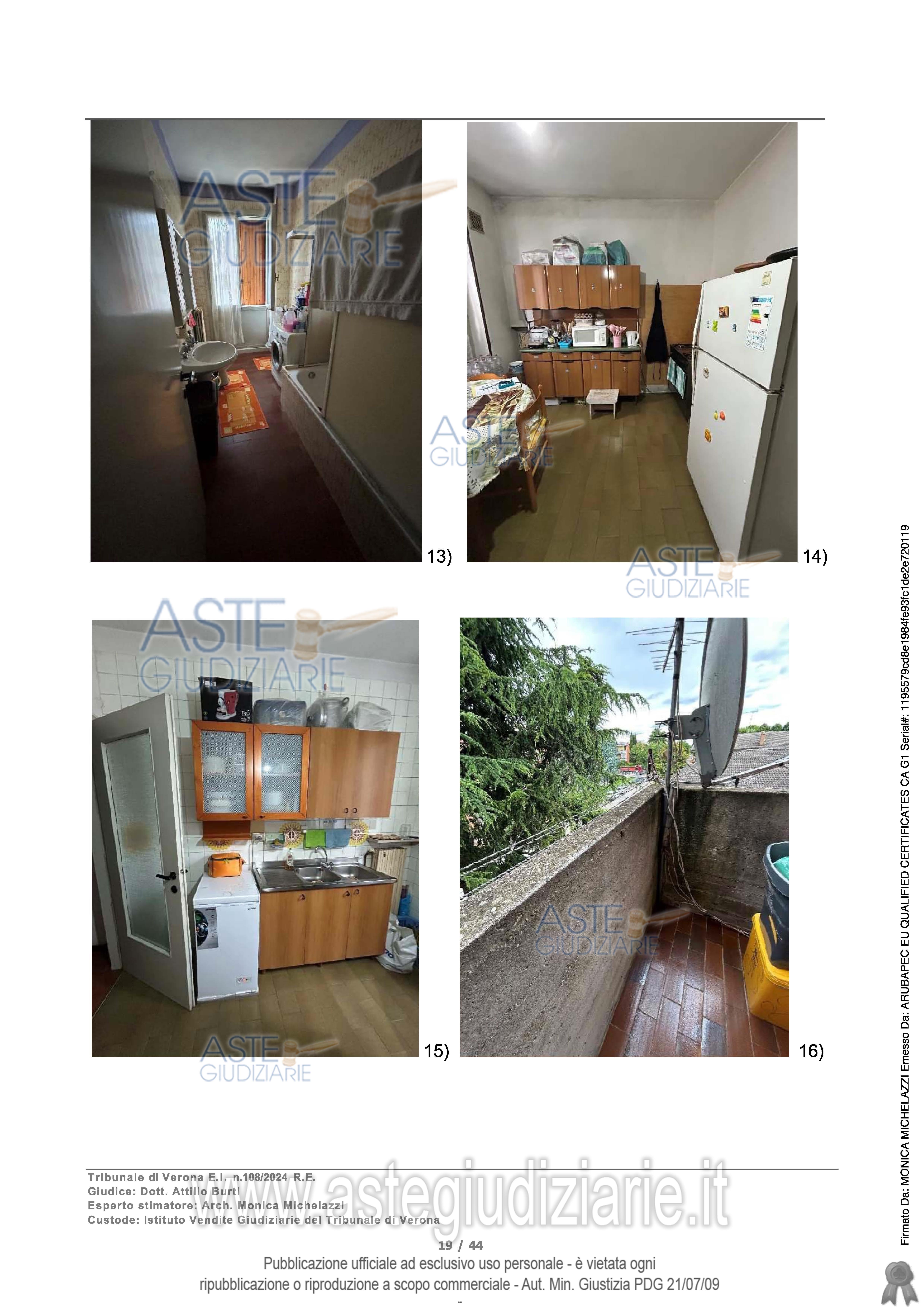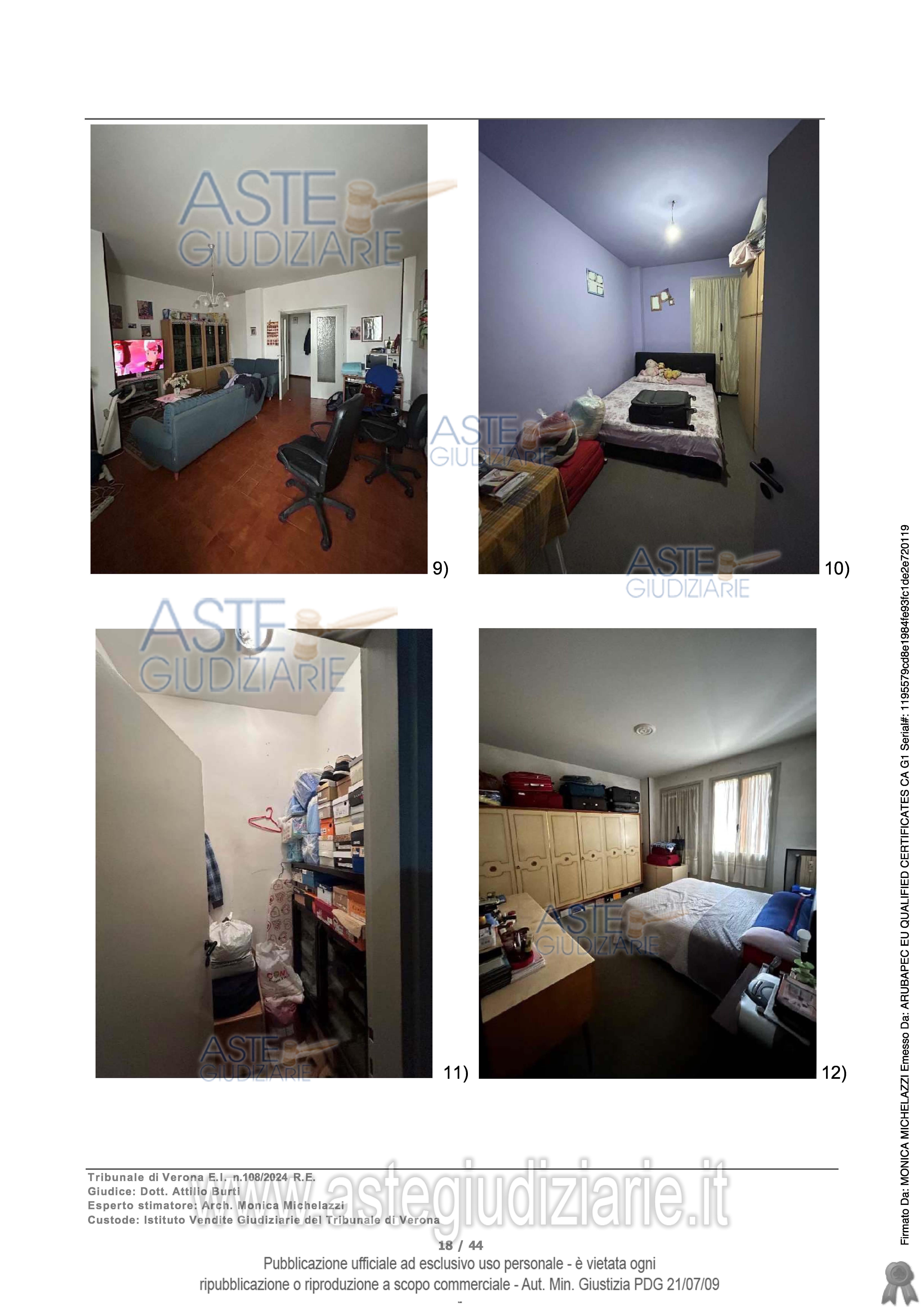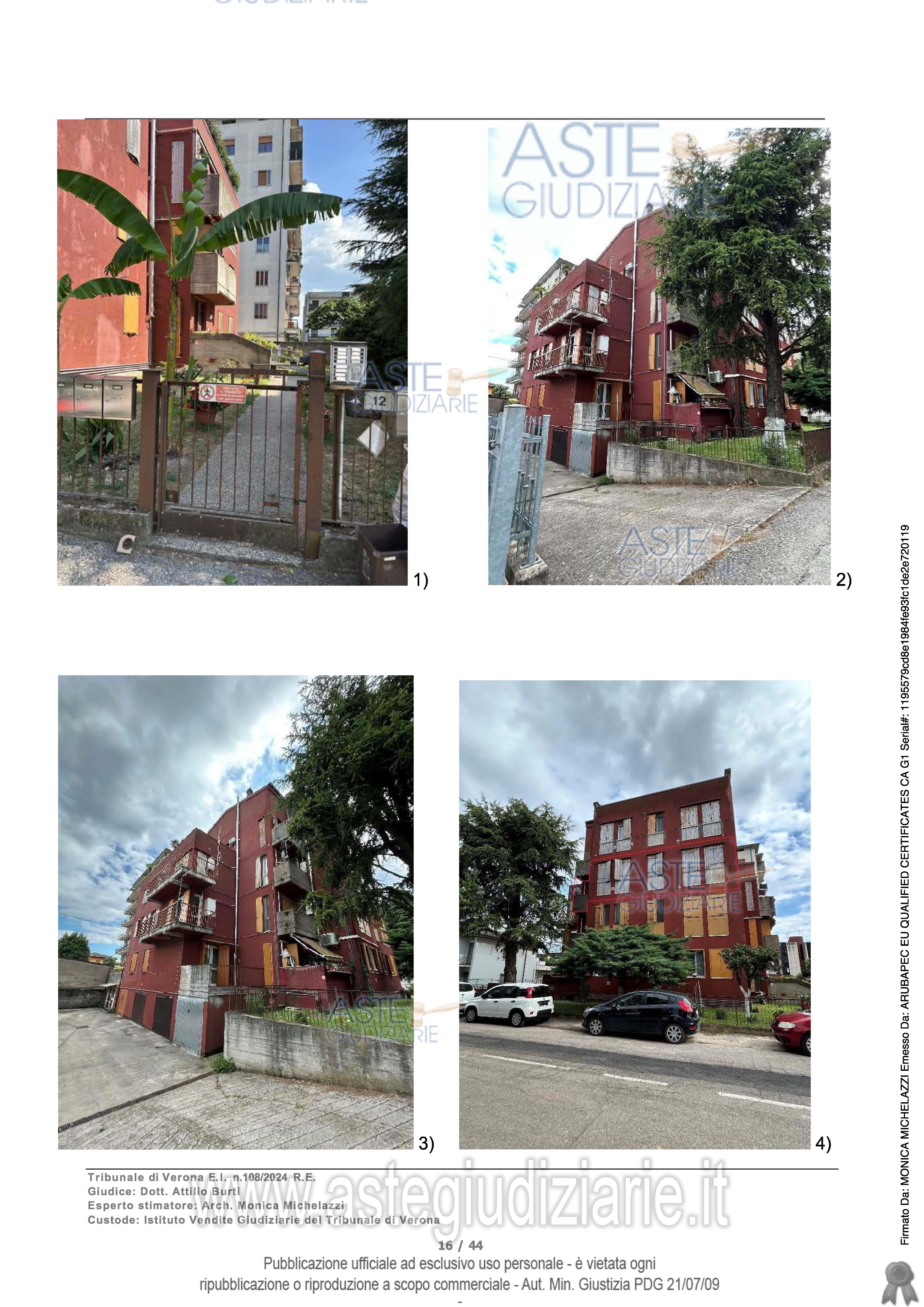 Vendita all'asta Senza incanto, con gara telematica sincrona mista - LOTTO UNICO: Diritto di proprietà per la quota di 1/1 di piena proprietà di unità abitativa - Piano 2, Abitazione A/2, Classe 2, consistenza 5,5 vani, mq 98,00 - Piano S1, Autorimessa C/6, Classe 4, consistenza mq 14,00. Trattasi di appartamento all’interno di un edificio di civile abitazione di quattro piani fuori terra al piano secondo con autorimessa e cantina di pertinenza al piano seminterrato. Prezzo base € 73.000,00 (offerta minima € 54.750,00). Data vendita 22/04/2026 ore 12:00. Giudice Francesco Fontana. Professionista delegato alla vendita Dott. Gina Maddalena Schiff - Email "ginamaddalena.schiff@gmail.com"; Tel. 3488432509. Custode Giudiziario Srl Società Vegi - Email "visiteimmobili@ivgverona.it"; Tel. 0459813484. Rif. Tribunale di Verona - Espropriazione immobiliare (cartabia) n. 108/2024