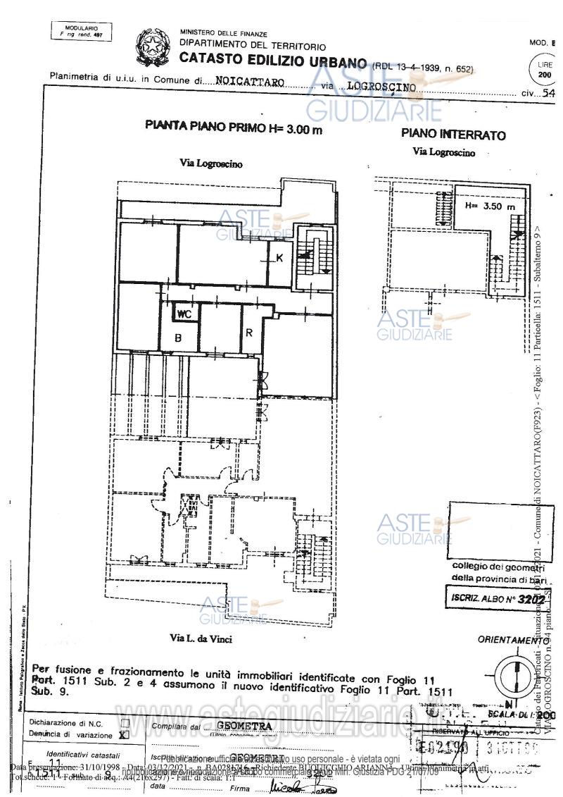 Vendita all'asta Senza incanto, con gara telematica asincrona - LOTTO 1: Pleine propriété d'un appartement à usage d'habitation civile, situé au premier étage et en sous-sol, composé de : une entrée, un salon, un couloir, un débarras, une salle à manger double, un coin cuisine, deux chambres doubles, une chambre simple, un balcon donnant sur la rue Logroscino, ainsi qu'une terrasse intérieure. Superficie d'environ 200 mètres carrés. B) Pleine propriété de la terrasse située au deuxième étage, d'une superficie d'environ 164 mètres carrés. Prezzo base € 132.750,00 (offerta minima € 99.563,00). Data inizio operazioni di vendita: 22/10/2025 ore 10:00. In caso di più offerte valide si procederà a gara che inizierà il 22/10/2025 ore 10:00 e terminerà il 29/10/2025 ore 12:00. Giudice Dott. Michele De Palma. Curatore Avv. Fabio Marzano. Rif. Tribunale di Bari - Fallimentare (nuovo rito) n. 9/2022