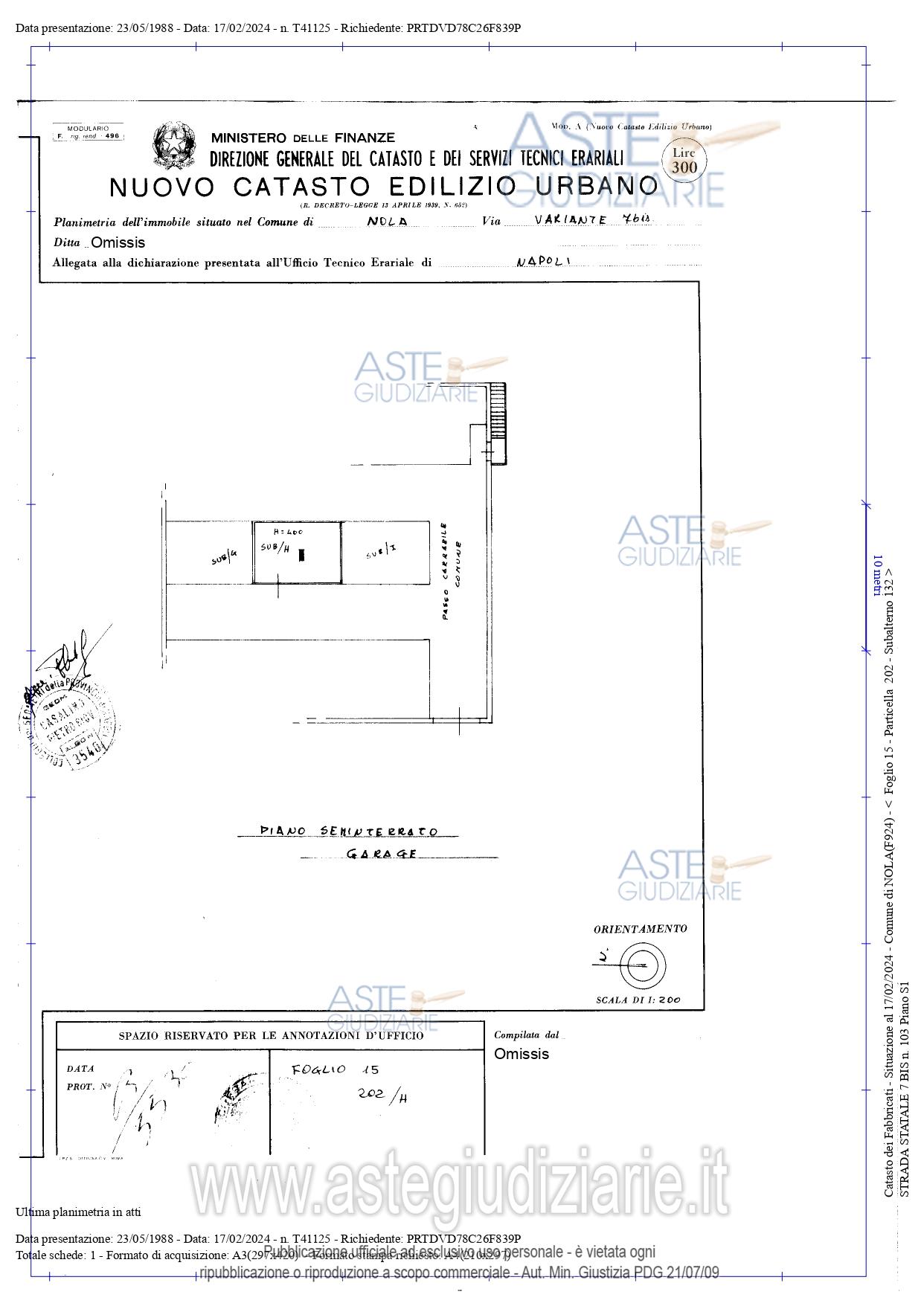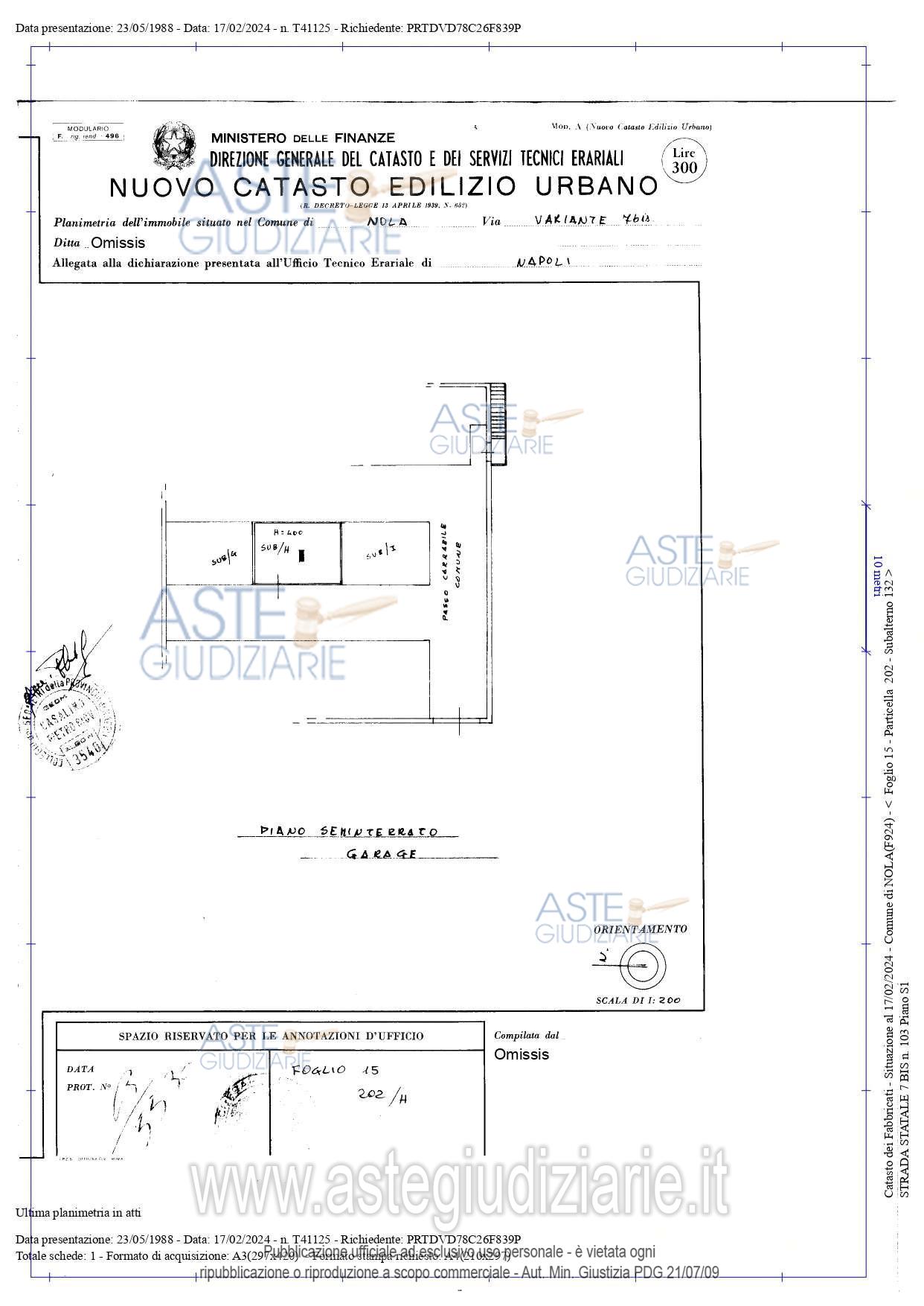 Vendita all'asta Senza incanto, con gara telematica asincrona - LOTTO 1: Piena ed esclusiva intera proprietà di: Bene n. 1 – Appartamento al piano secondo C.F. Comune di Nola (NA) al fg. 15 part. 202 sub. 32 cat. A/2, 5,5 vani, sup. cat. Tot. 110 mq rendita 610,71 € - Strada Statale 7 bis n. 103, scala C, interno 9, piano 2 - Bene n. 2 – Locale garage al piano seminterrato C.F. Comune di Nola (NA) al fg. 15 part. 202 sub. 132 cat. C/6 cons. 25 mq, sup. cat. Tot. 25 mq, rendita 74,89 €, Strada Statale 7 bis n. 103, piano S1. Prezzo base € 123.750,00 (offerta minima € 92.812,50). Data inizio operazioni di vendita: 07/07/2026 ore 16:00. Giudice: Gennaro Beatrice.