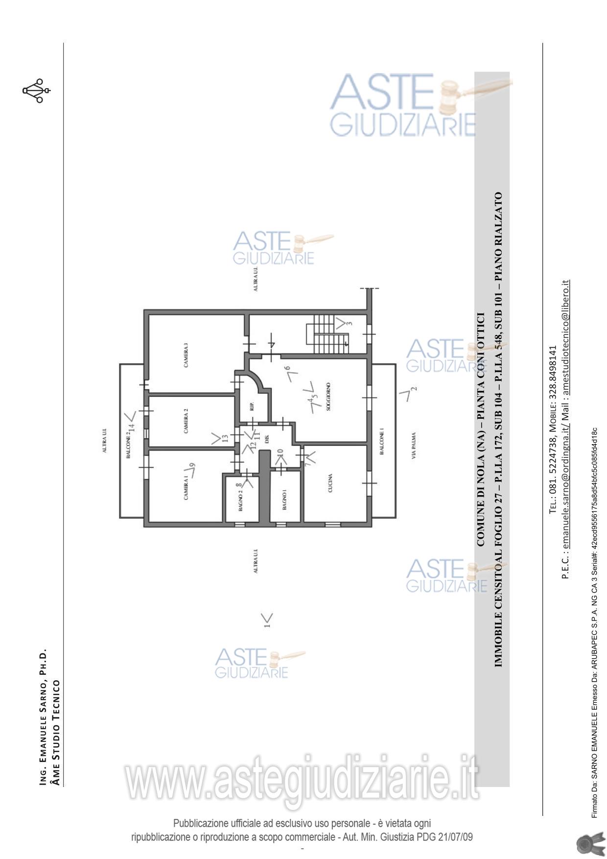 Vendita all'asta Senza incanto, con gara telematica asincrona - LOTTO UNICO: Piena ed intera proprietà di appartamento sita in Nola alla via Palma, n. 40. L’accesso al cespite avviene mediante un cancello pedonale posto su via Palma al civico n. 40. L’appartamento è composto da un ampio soggiorno, una cucina, due bagni, tre camere da letto, un ripostiglio. È, altresì, dotato di due balconi: il primo prospiciente il lato Est che permette l’affaccio su via Palma ed il secondo prospiciente il lato Ovest. Prezzo base € 235.364,18 (offerta minima € 176.523,13). Data inizio operazioni di vendita: 12/05/2026 ore 17:00. Professionista delegato alla vendita Dott. Salvatore Russo - Email "studiorusso4@gmail.com"; Tel. 0818031586. Custode Giudiziario Dott. Salvatore Russo - Email "studiorusso4@gmail.com"; Tel. 0818031586. Rif. Tribunale di Nola - Espropriazione immobiliare (cartabia) n. 198/2024