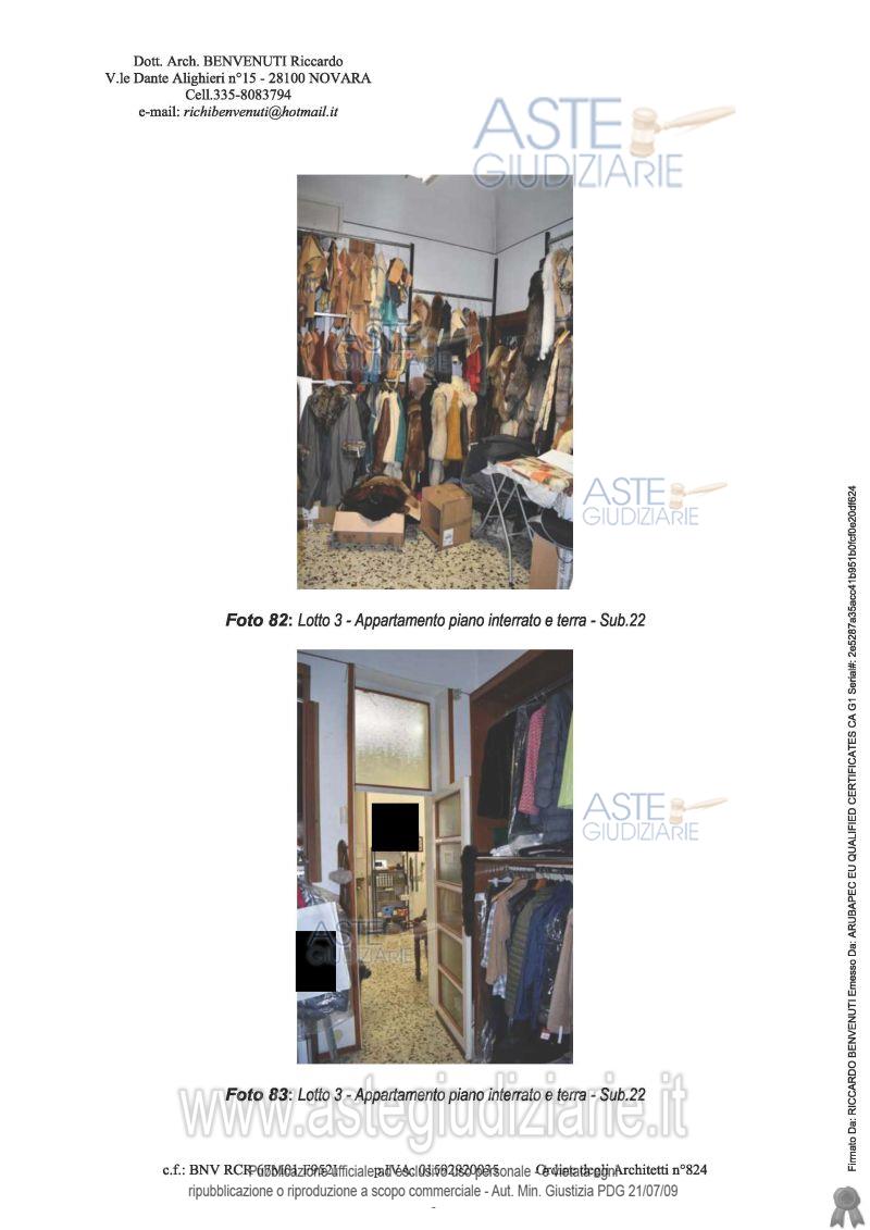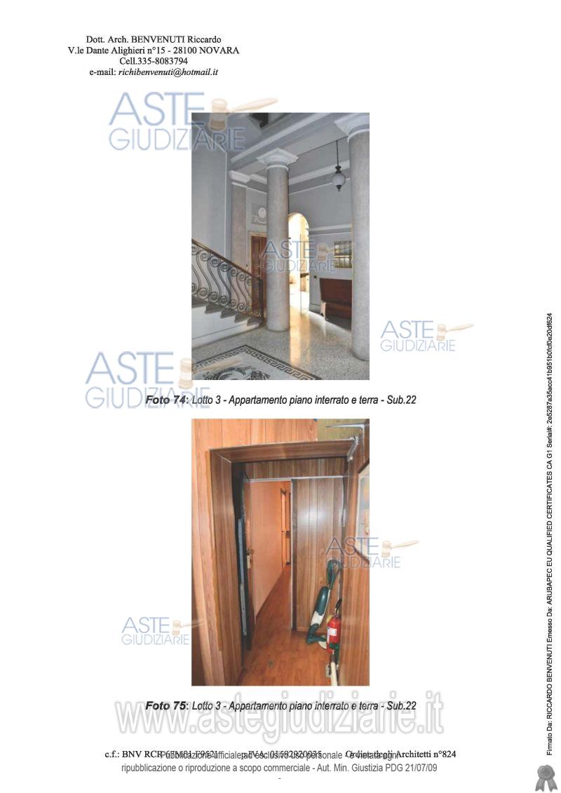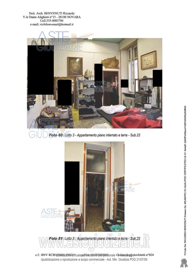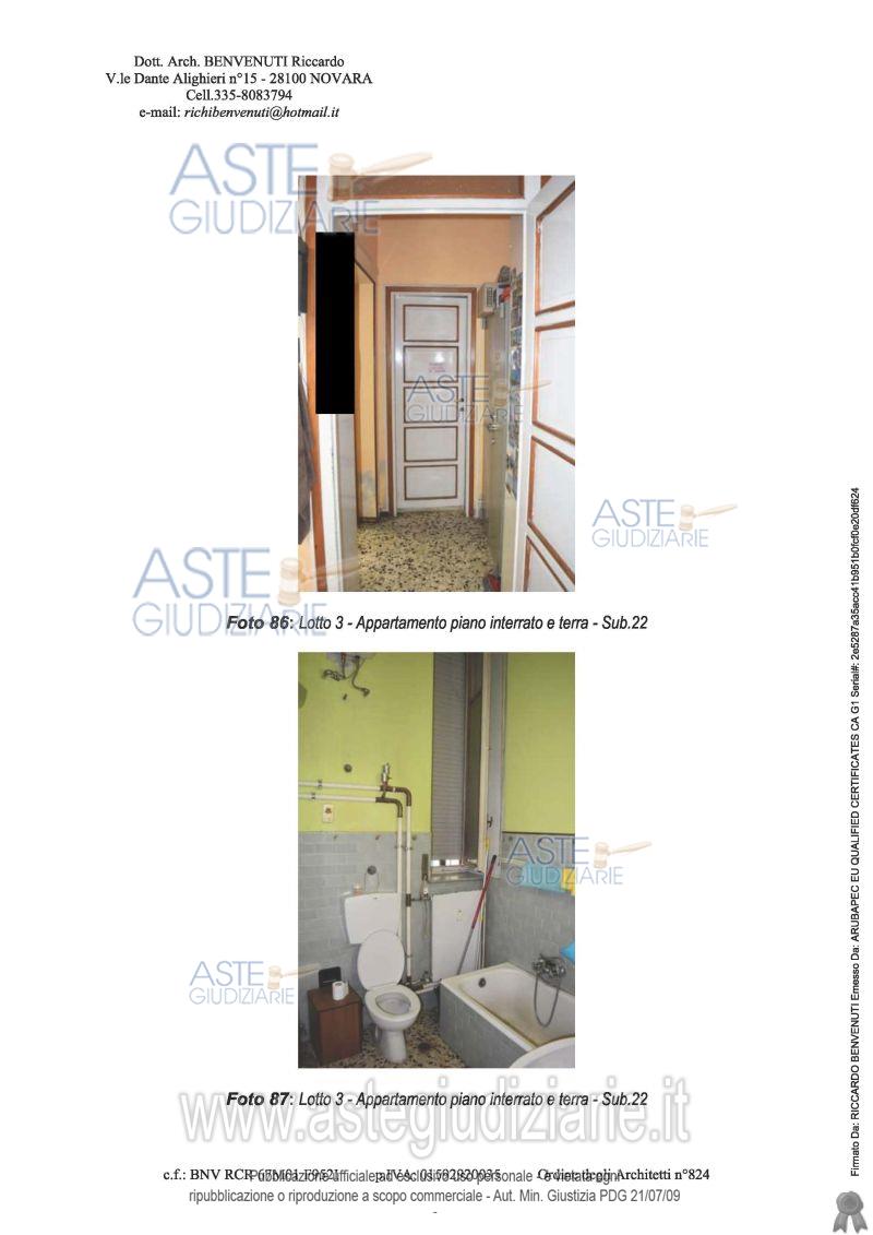 Vendita all'asta Senza incanto, con gara telematica asincrona - LOTTO 3: In palazzo articolato in più corpi di fabbrica, composto da tre piani fuori terra, piena proprietà per la quota di 1000/1000 appartamento, attualmente utilizzato come laboratorio, sito al piano terra composto da: soggiorno, sala pranzo, cucina, camera da letto e servizio igienico, oltre alla cantina posta al piano interrato. Prezzo base € 71.600,00 (offerta minima € 53.700,00). Data inizio operazioni di vendita: 20/05/2026 ore 10:30. Professionista delegato alla vendita Dott. Veronica Bosi - Email "infoaste@cegnovara.it"; Tel. 0321397588. Custode Giudiziario Ifir Piemonte Ivg Srl - Email "richiestevisite.novara@ivgpiemonte.it"; Tel. 0321628676. Rif. Tribunale di Novara - Espropriazione immobiliare (cartabia) n. 116/2024