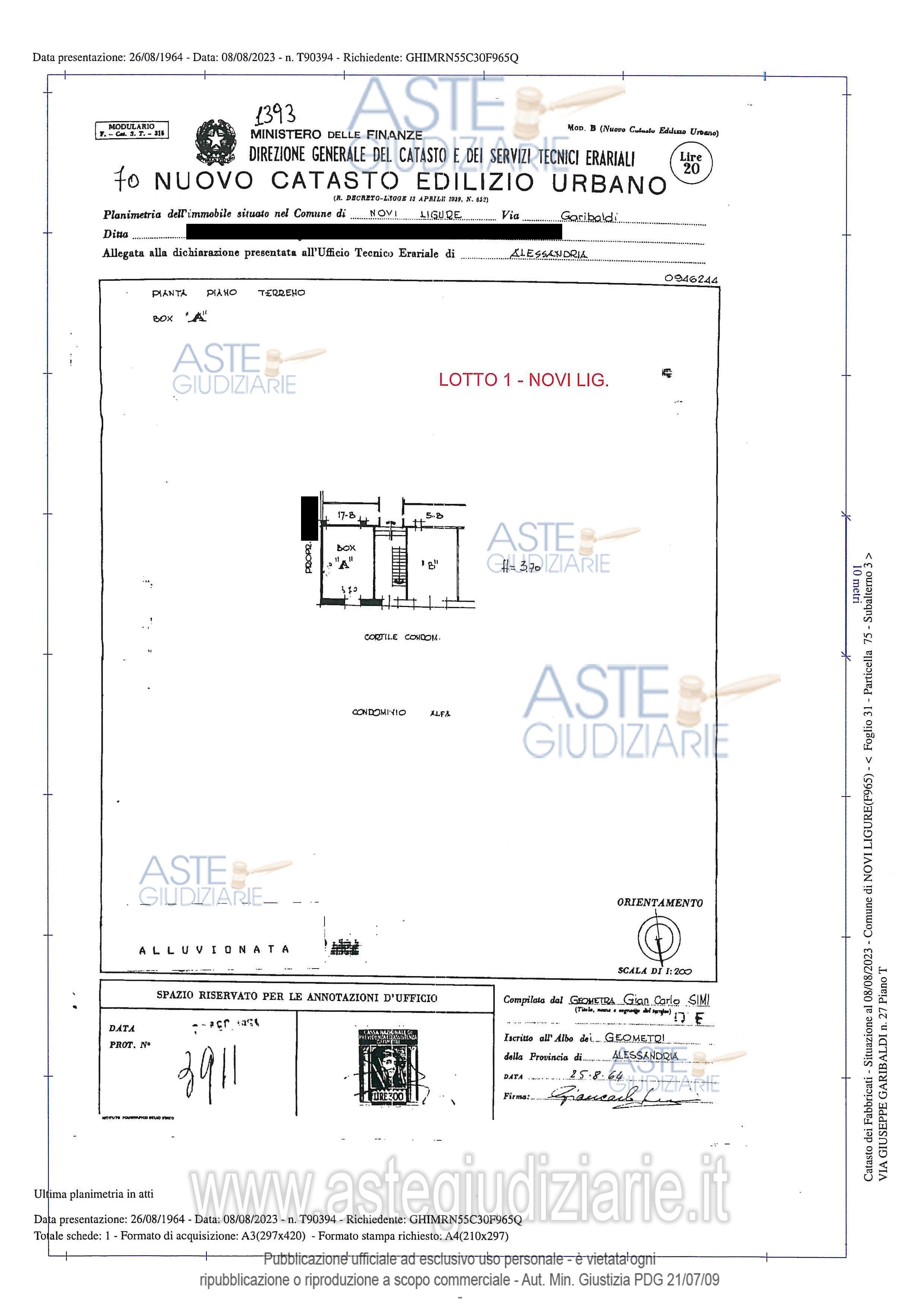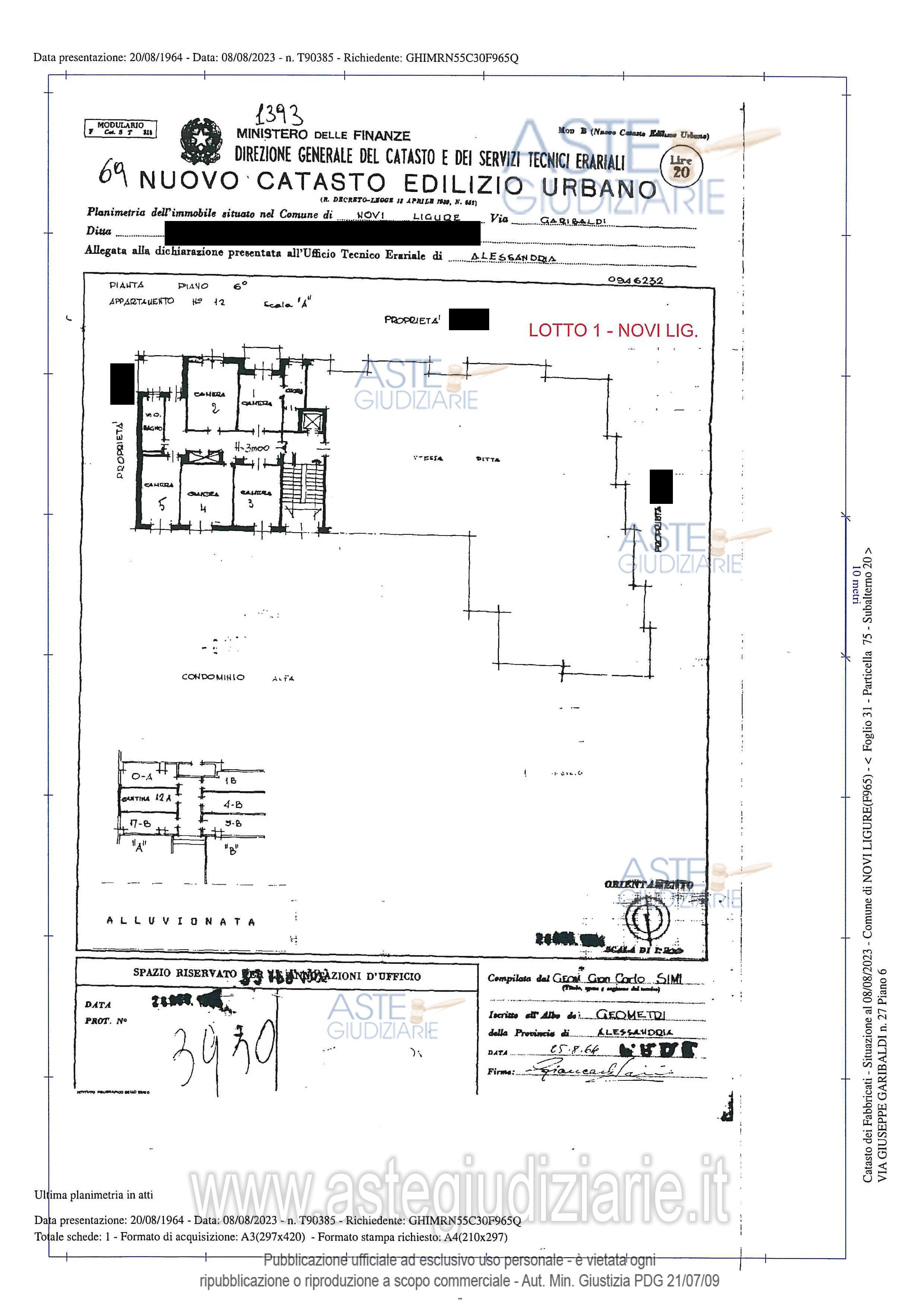 Vendita all'asta Senza incanto - LOTTO 1: ABITAZIONE DI TIPO CIVILE - ALLOGGIO PIANO 6 - AUTORIMESSA BOX AUTO E CANTINA. Prezzo base € 48.000,00 (offerta minima € 36.000,00). Data vendita 07/11/2025 ore 10:00. Giudice Dott. Michele Delli Paoli. Professionista delegato alla vendita Avv. Gianfranco Foglino - Email "gianfranco.foglino@virgilio.it"; Cell. 3332758519; Tel. 0131275106. Custode Giudiziario Avv. Gianfranco Foglino - Email "gianfranco.foglino@virgilio.it"; Cell. 3332758519; Tel. 0131275106. Rif. Tribunale di Alessandria - Espropriazione immobiliare (cartabia) n. 157/2023