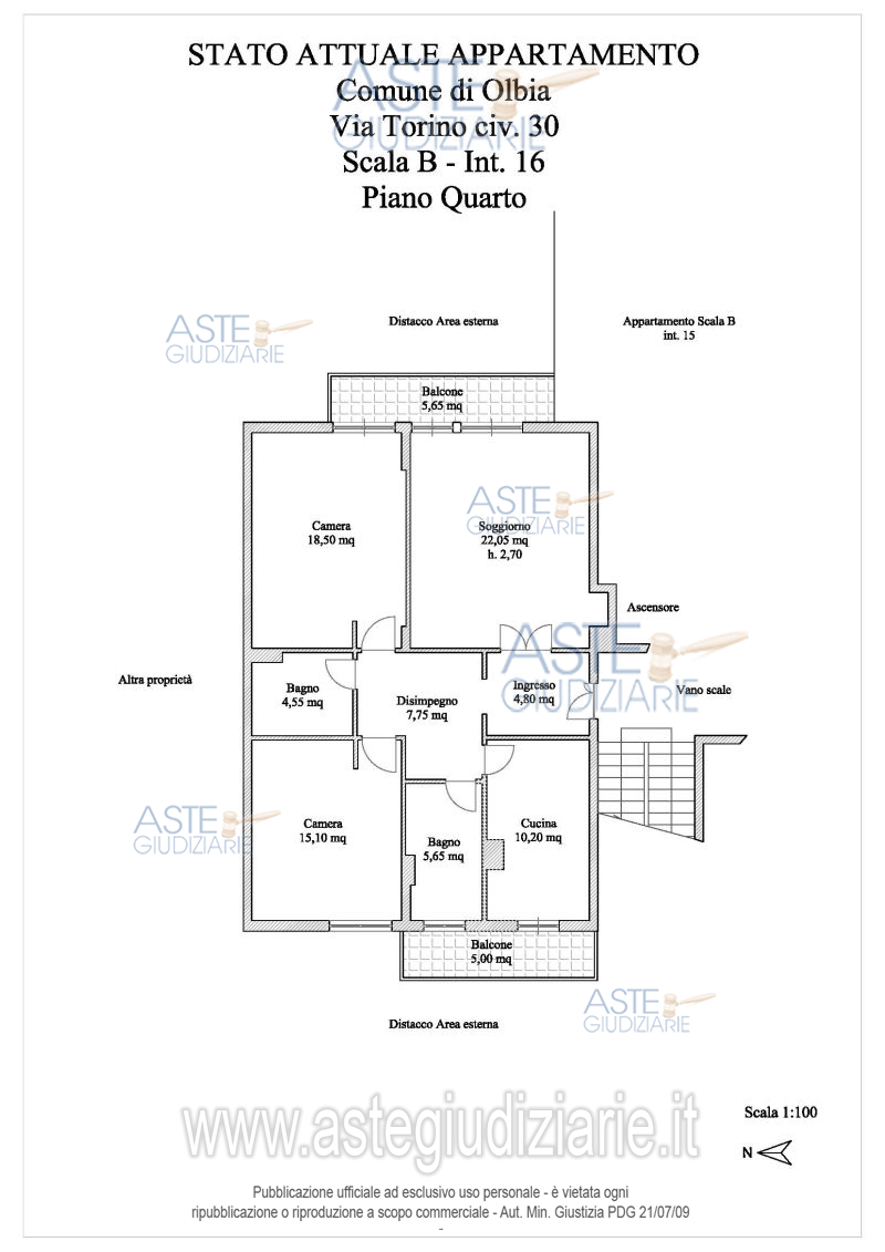Vendita in attesa dell'emissione del nuovo bando d'asta. LOTTO 19: Piena proprietà appartamento Comune di Olbia (SS), Via Torino, n. 30, scala B, piano 4, int. 16. Ingresso, soggiorno, disimpegno, cucina, due camere da letto, due bagni. Due balconi. Complessivi mq 98 circa.