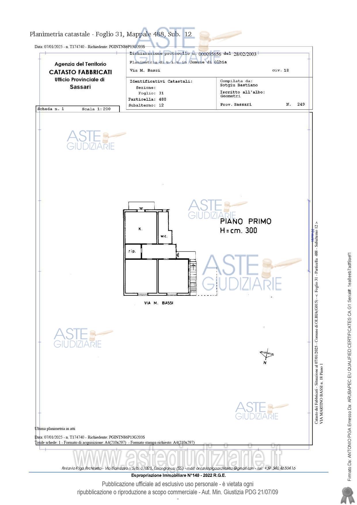 Vendita all'asta Senza incanto, con gara telematica asincrona - LOTTO UNICO: L’immobile, situato al piano primo, è una civile abitazione così composta: zona giorno con angolo cottura, bagno zona giorno, camera matrimoniale con bagno, ripostiglio con accesso al sottotetto, disimpegno, cameretta, ulteriore cameretta. Distinto al NCEU al Foglio 31, Mappale 488, Sub 12, Categoria A/3a Cl. 2 - Consistenza 4 vani - Superficie Catastale mq. 96 - Rendita €.330,53, Zona censuaria 1, Piano Primo. Prezzo base € 184.700,00 (offerta minima € 138.525,00). Data inizio operazioni di vendita: 02/07/2026 ore 16:00. Giudice Antonia Palombella. Professionista delegato alla vendita Avv. Paolo Camboni - Email "paolocamb@hotmail.com"; Cell. 3387565519; Tel. 078968880. Custode Giudiziario Ivg Tempio Pausania - Email "visite.ivgtempio@gmail.com"; Tel. 079630505. Rif. Tribunale di Tempio Pausania - Esecuzione immobiliare post legge 80 n. 140/2022
