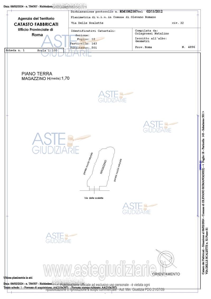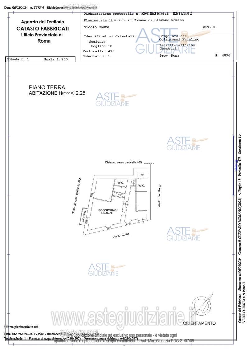 Vendita all'asta Senza incanto, con gara telematica asincrona - LOTTO UNICO: Quota pari a 1/1 del diritto di piena proprietà dell’immobile costituito da appartamento ubicato nel Comune di OLEVANO ROMANO (RM), VICOLO COSTA n. 9, piano T. Prezzo base € 11.812,50 (offerta minima € 8.859,38). Data inizio operazioni di vendita: 13/01/2026 ore 16:00. Giudice Francesco Lupia. Professionista delegato alla vendita Dott. Valerio Ottaviani - Email "v.ottaviani@studio-ottaviani.net"; Tel. 0689376190. Custode Giudiziario Ivg Di Roma Srl - Email "pvp@visiteivgroma.it"; Tel. 0689569801. Rif. Tribunale di Tivoli - Esecuzione immobiliare post legge 80 n. 265/2018