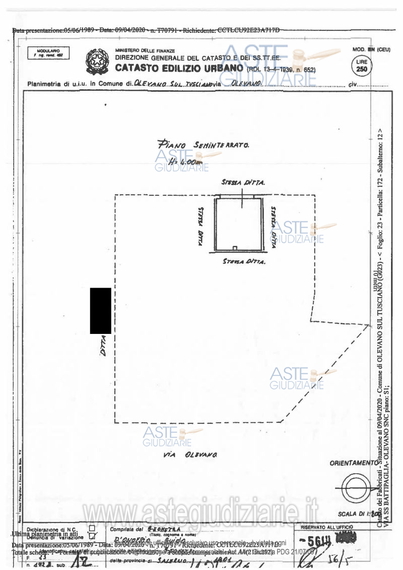 LOTTO UNICO: Квартира, предназначенная для жилого использования, расположена на первом этаже. Склад находится на подвальном этаже Долевая доля в размере 2/5 полной и безусловной собственности автостоянки с распашными воротами, расположенной на подвальном этаже. Ultimo prezzo base € 34.878,24 (offerta minima € 26.158,68). Объявление аукциона по данной продаже будет вскоре опубликовано. Giudice Giorgio Jachia. Rif. Tribunale di Salerno - Liquidazione del patrimonio del debitore n. 7/2021